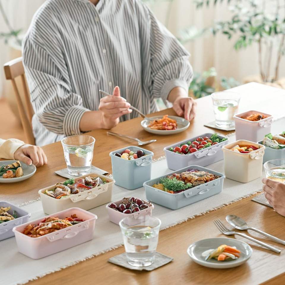 Ippinsha ภาชนะเก็บอาหารสไตล์ญี่ปุ่นขนาด600มล. กล่องอาหารกลางวันไร้สาร BPA แบบสี่เหลี่ยมพกพาใช้กับเครื่องล้างจานได้