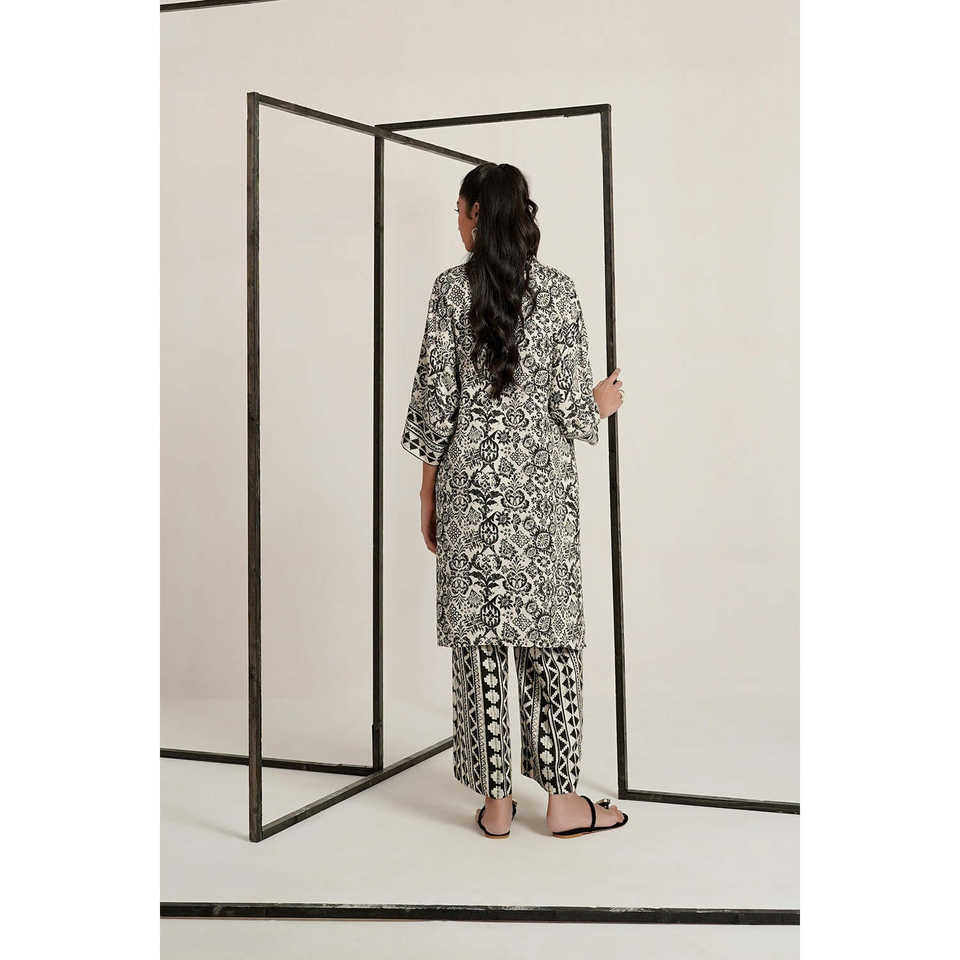 ชุดเสื้อเชิ้ตผ้าทวิลวิสโคสพิมพ์ลายสไตล์โบฮีเมียน IPST-44283 และกางเกงขายาวผ้าเครป แขนสามส่วน สำหรับฤดูใบไม้ผลิ/ฤดูร้อน