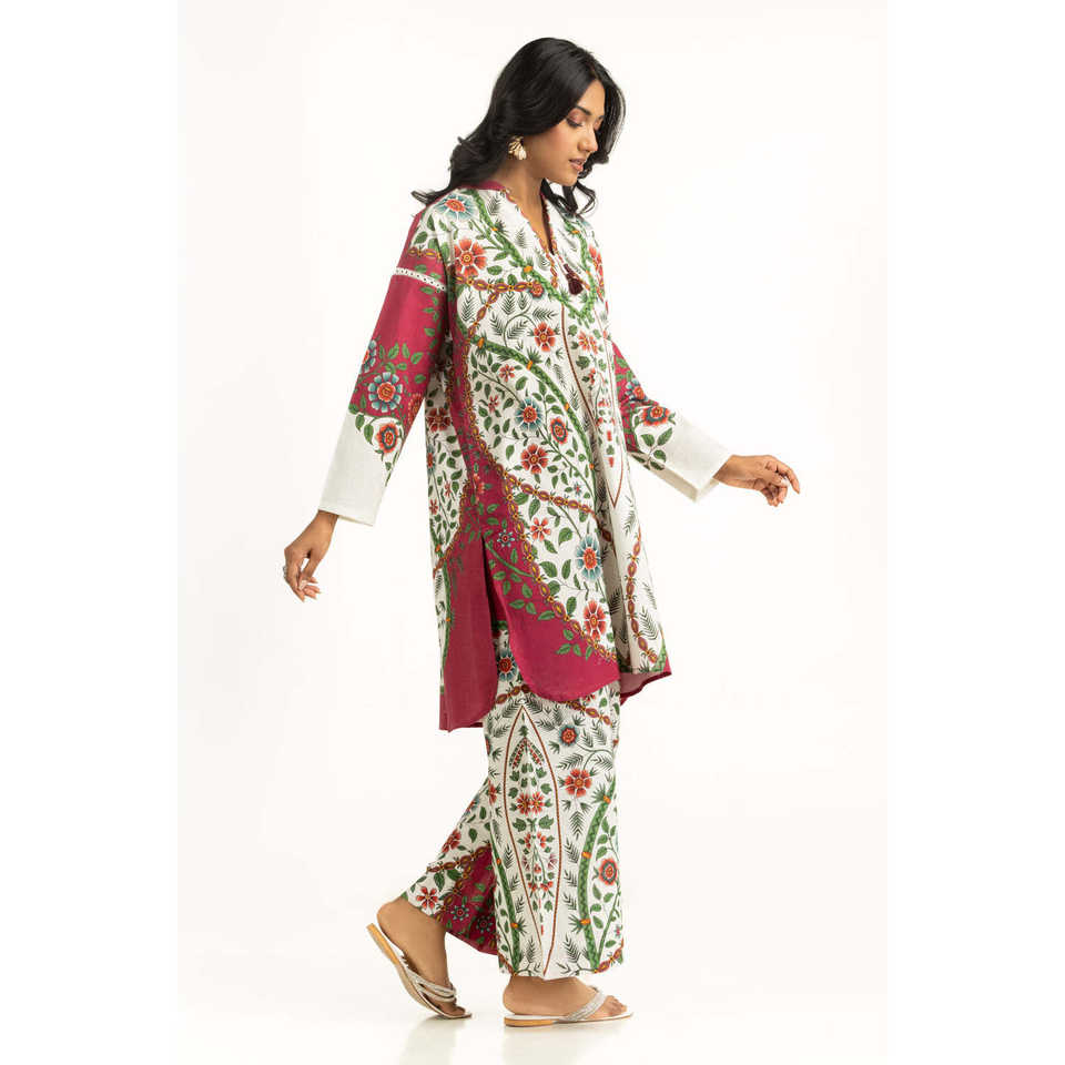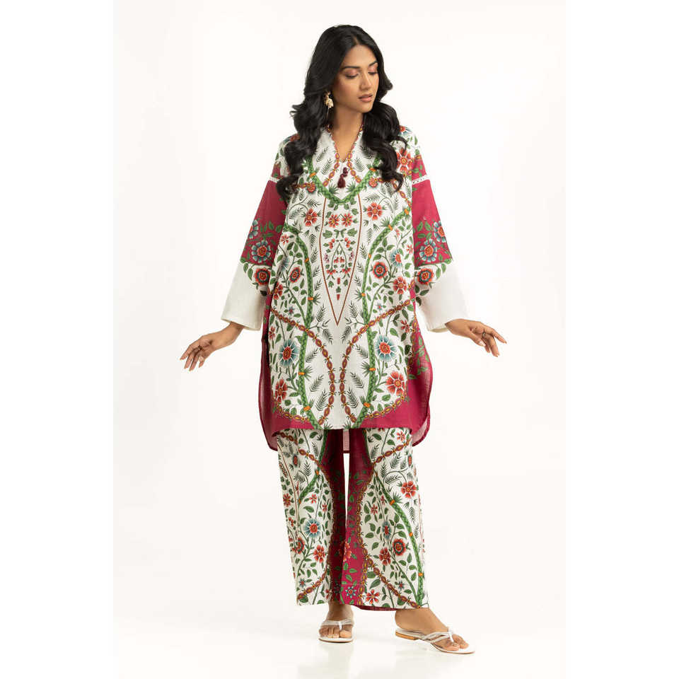 ชุดเซ็ตพิมพ์ลายโบฮีเมียนครอสสลับสี รุ่น IPST-55261 สำหรับฤดูใบไม้ผลิ/ฤดูร้อน ชุด 2 ชิ้น ผ้าเครป คอปก แขนกุด กางเกงขาสั้น