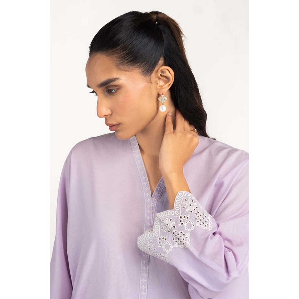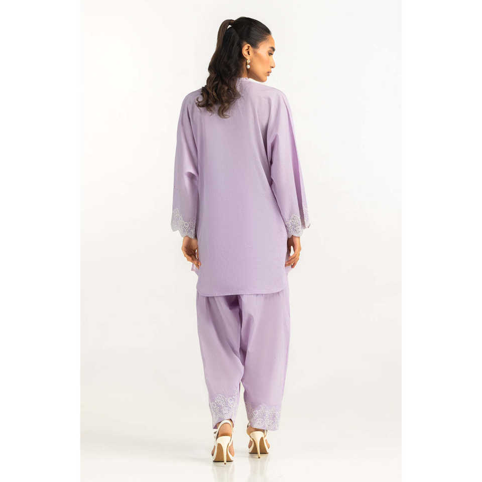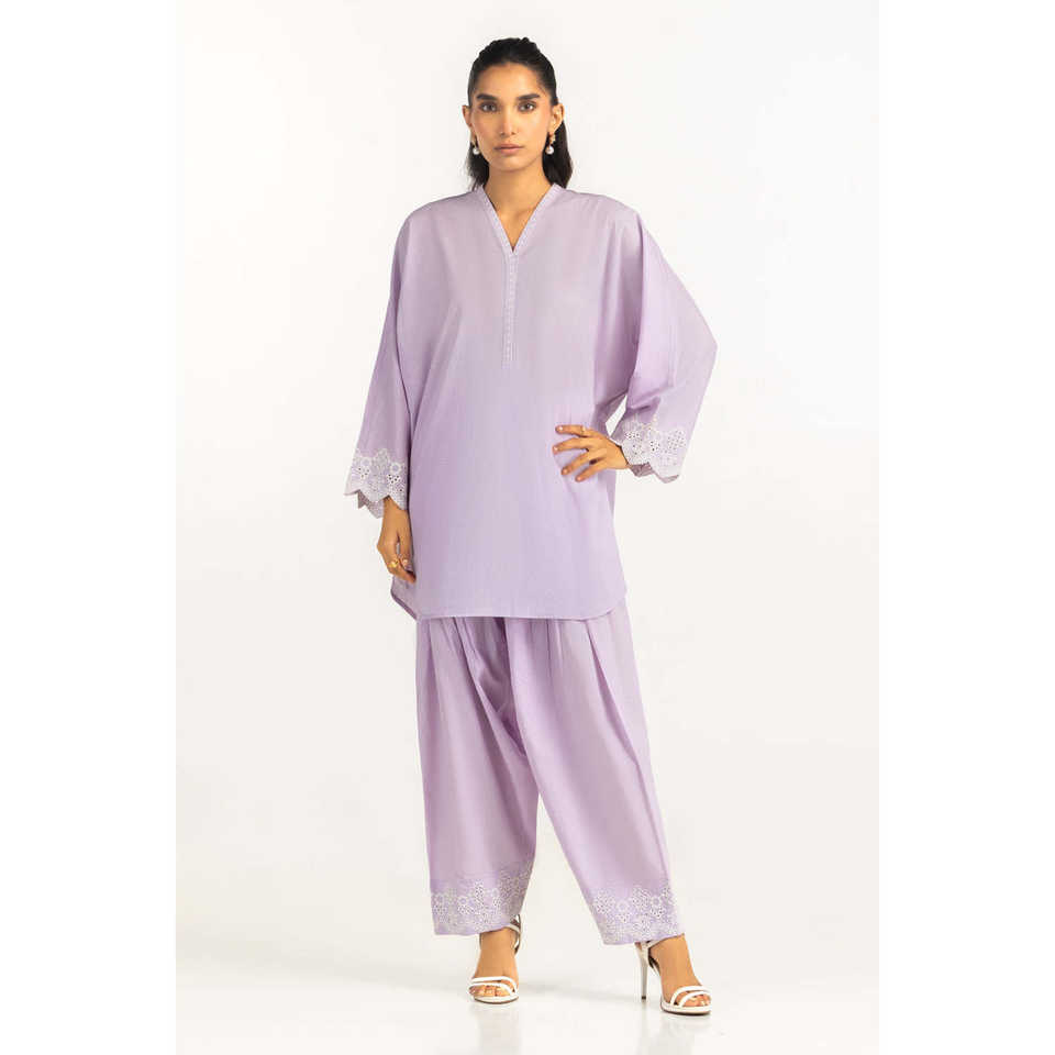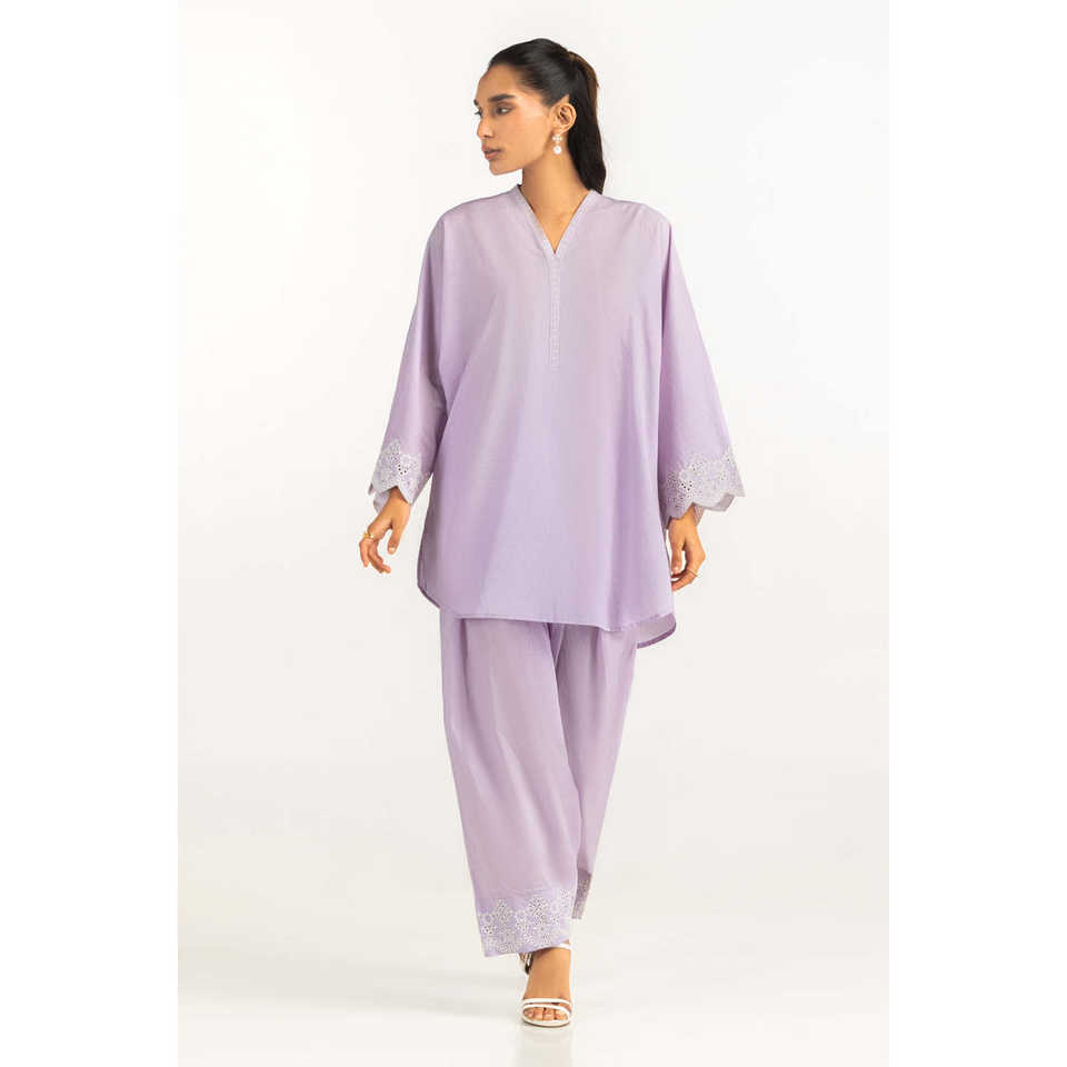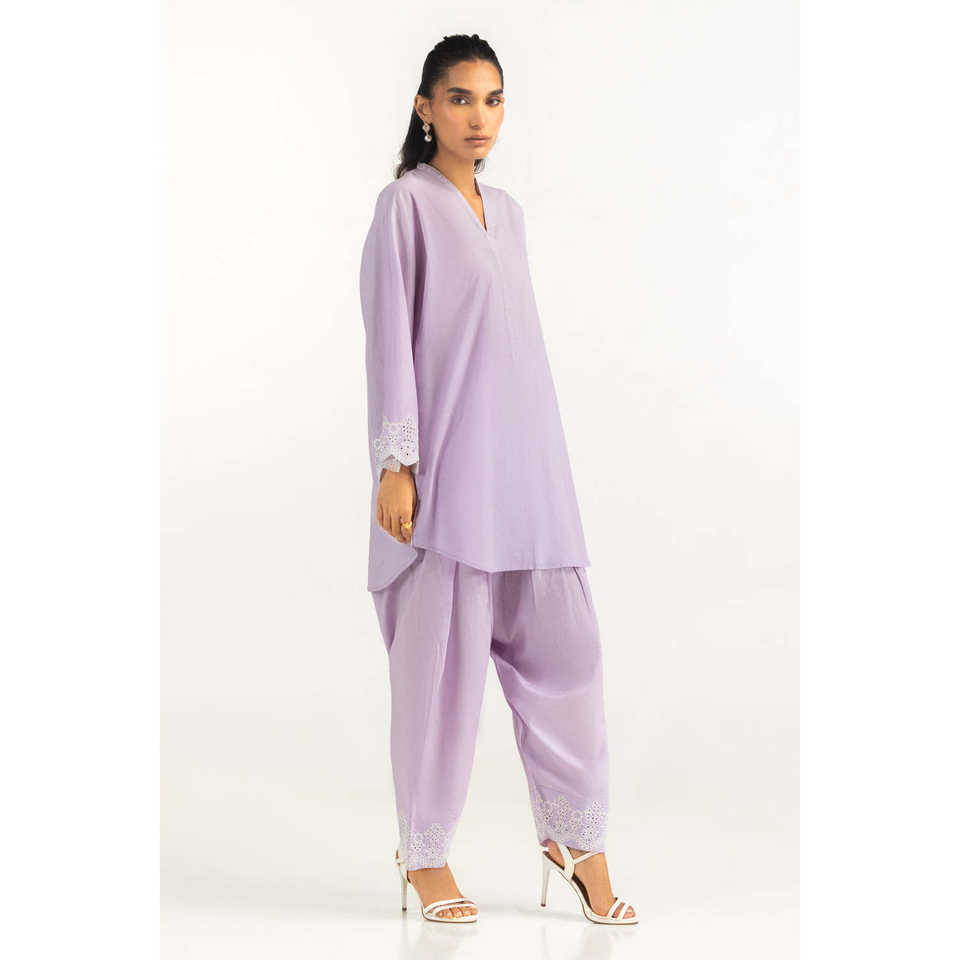 ชุดเซ็ตปักลายผ้าแคมบริก IPST-77521 ชุดลำลองผ้าชีฟองแขนสามส่วน กางเกงขายาวระดับเข่า ไซส์ XS สำหรับชุดฤดูใบไม้ผลิ/ฤดูร้อน 3 ชิ้น