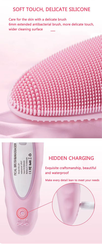 แปรงทำความสะอาดผิวหน้าซิลิโคนแบบชาร์จ USB กันน้ำ IPX7 พร้อมระบบสั่นสะเทือนความถี่สูง ช่วยทำความสะอาดรูขุมขนอย่างล้ำลึก ฟื้นฟูผิวหน้า