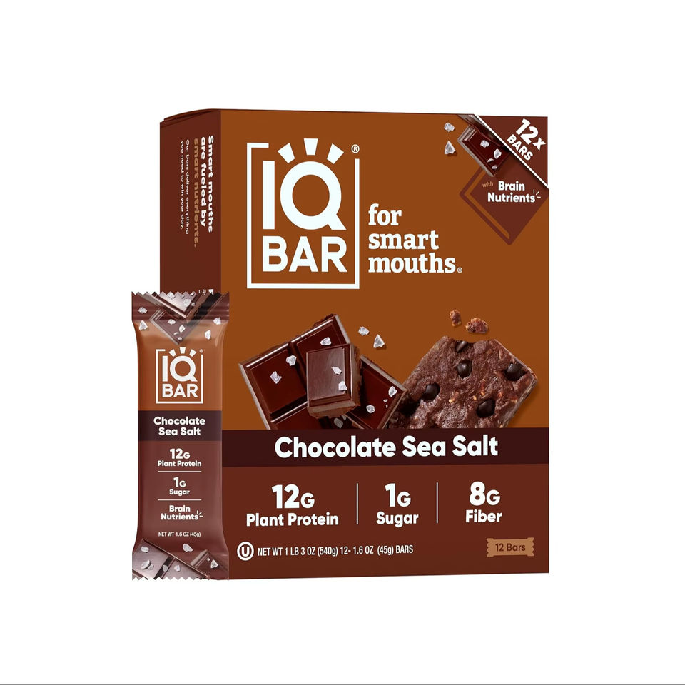 ไอคิวบาร์ คลีน แพลนท์ โปรตีนบาร์ - ช็อกโกแลต เกลือทะเล - 12 ชิ้น