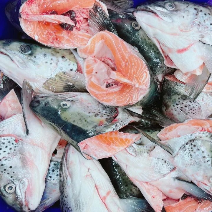 IQF หัวปลาแซลมอนแอตแลนติกแช่แข็งการแปรรูปผลพลอยได้สำหรับขายในตลาดบริการด้านอาหารทะเล