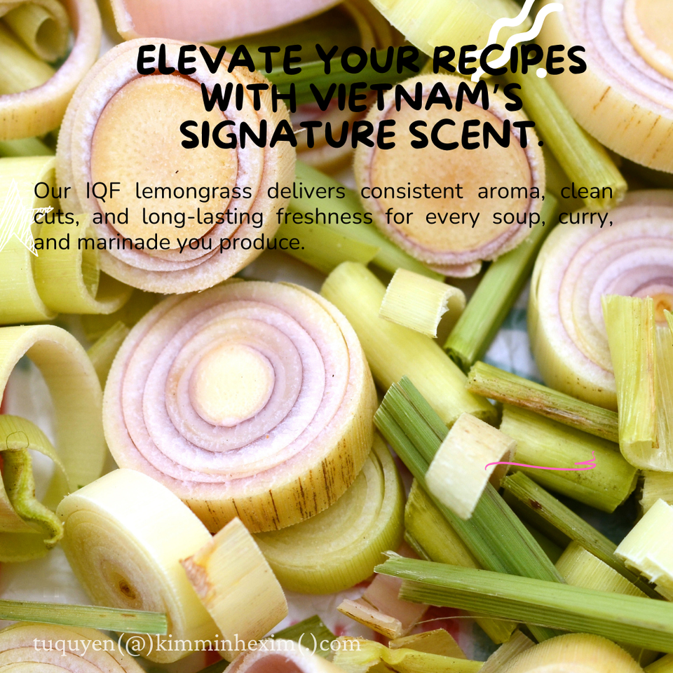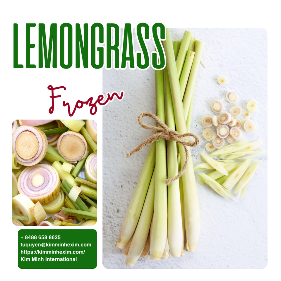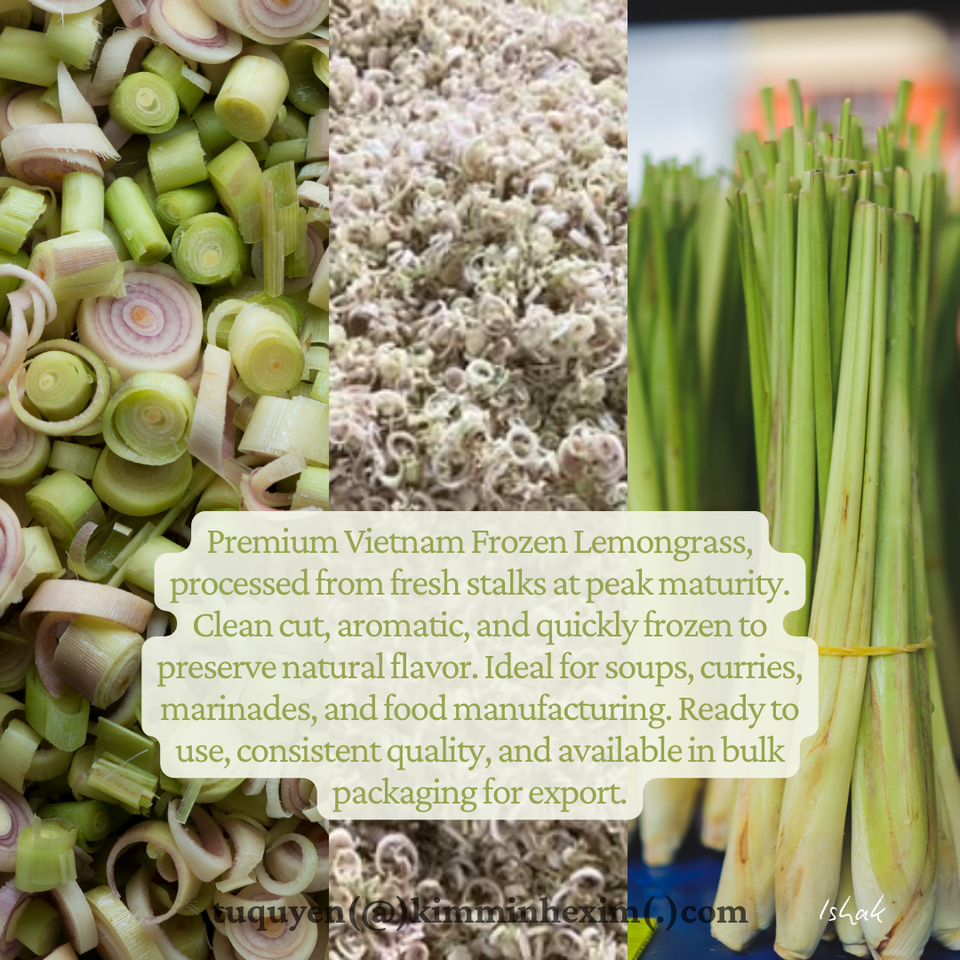 ตะไคร้หอมแช่แข็งจากเวียดนาม แบบทั้งต้น หั่นเป็นชิ้น และสับละเอียด สำหรับการผลิตอาหาร บรรจุภัณฑ์แบบขายส่ง
