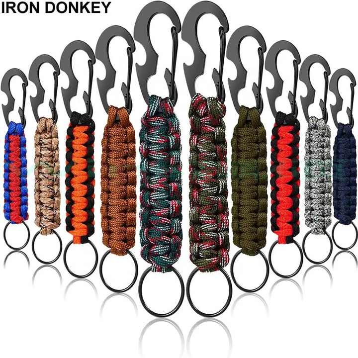 Irondonkey ที่เปิดขวดปีนเขายุทธวิธีกลางแจ้งเจ็ดแกนร่มเชือกทอ550 paracord พวงกุญแจการอยู่รอด