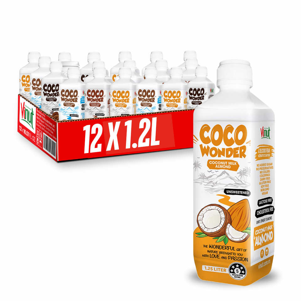 เครื่องดื่มกะทิที่ได้รับการรับรองมาตรฐาน ISO BRC Kosher หลากหลายรสชาติโรงงาน vinut, ตัวอย่างฟรี, การออกแบบฟรี, oem/odm, halal fssc ต่ำ