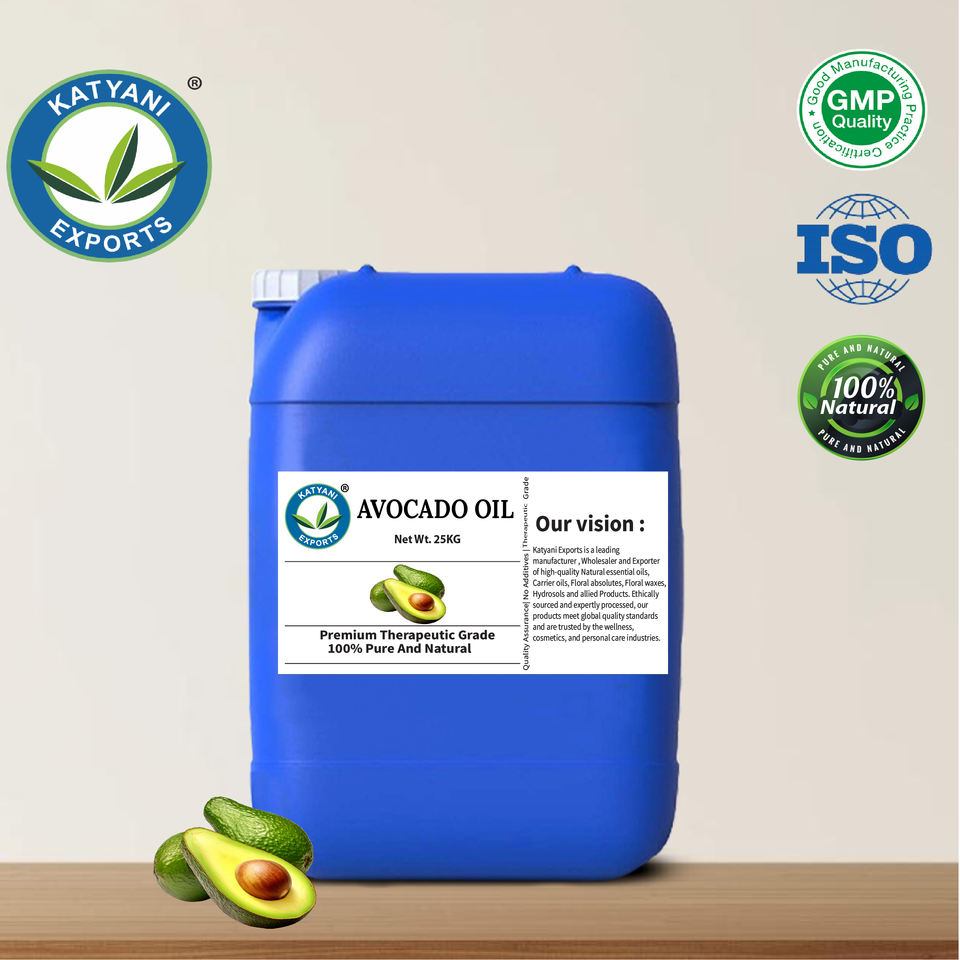 น้ำมันอะโวคาโด (Persea americana) แบบสกัดเย็น ได้รับการรับรองมาตรฐาน ISO เกรดบำบัดและอโรมาเธอราพี ผู้ส่งออกในอินเดีย