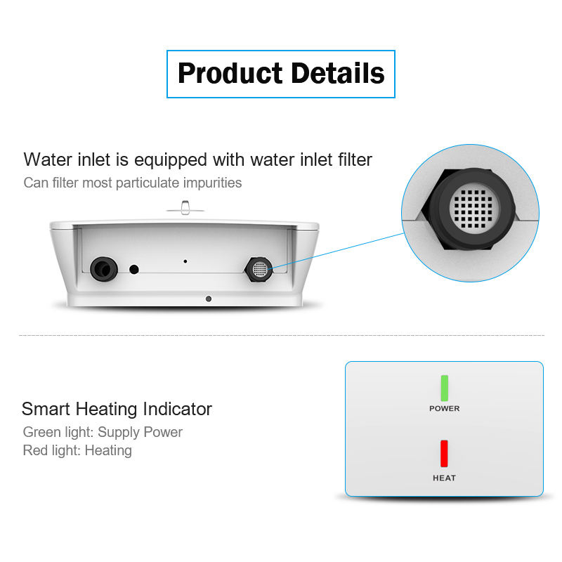 ISO9001 Certified Electric Tankless Water Heater 5500W Knob Control Plastic Housing for Household Hotel Use CE CB