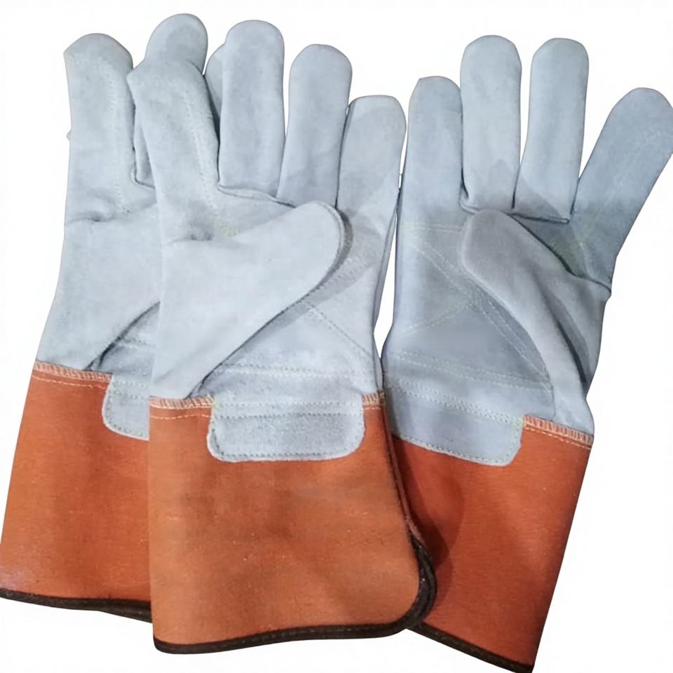 ถุงมือทำงานหนังวัวแท้แบบกำหนดเอง ราคาถูก ปลายแขนตรง 12 นิ้ว กันลื่น ทนทาน ด้านหลังบุผ้าฝ้าย