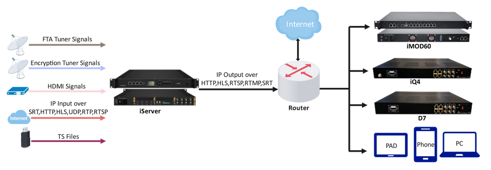 Iserver IPTV เซิร์ฟเวอร์ซอฟต์แวร์โรงแรมระบบอินเทอร์เน็ตทีวีแปลงโปรโตคอล http UDP RTP RTSP เป็น HLS IPTV GATEWAY HD Encoder