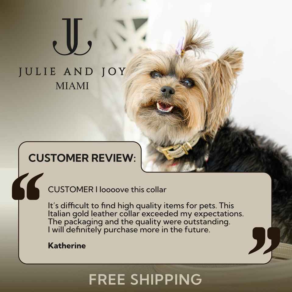 ของขวัญหนังอิตาเลียนสีฟ้าสำหรับคนรัก-อุปกรณ์ตกแต่งสีทองและปลอกคอสุนัขหนังแท้