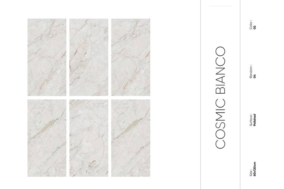 กระเบื้องพอร์ซเลนเคลือบเงาดีไซน์อิตาลี COSMIC BIANCO ป้องกันการลื่น กระเบื้องปูพื้น/ผนังห้อง ป้องกันแบคทีเรีย หนา 9 มม. ขนาด 600x1200 มม.
