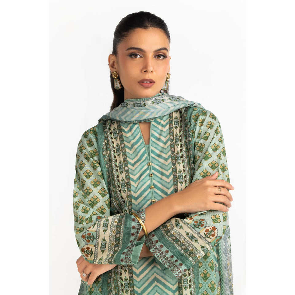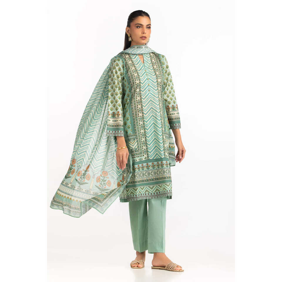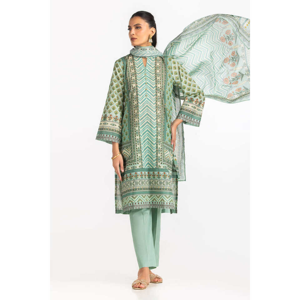 IUSTKSD-2232 3PC Casual Summer Printed Lawn Suit for Office Lady