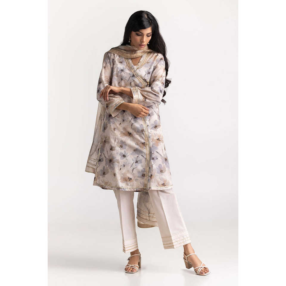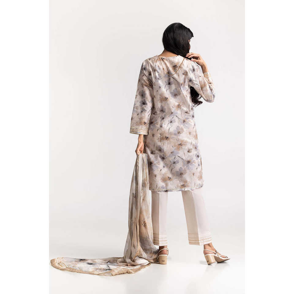ชุดสูทผ้าฝ้ายพิมพ์ลาย 3 ชิ้นสำหรับผู้หญิง IUSTKSD-47 ผ้าคอตตอน 100% ระบายอากาศได้ดี ตกแต่งด้วยกระดุม