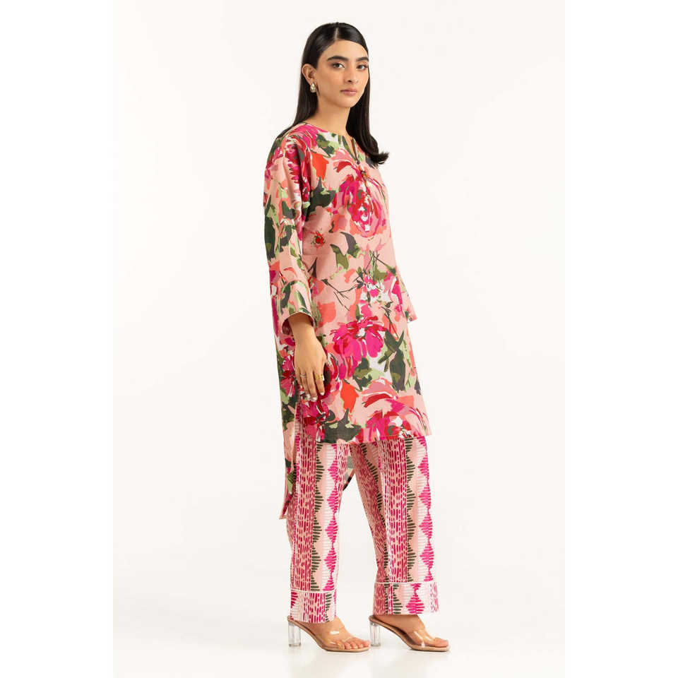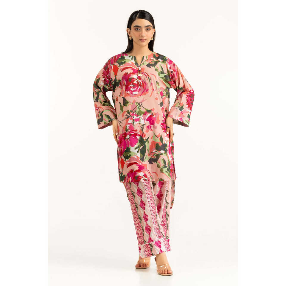 IUSTTS-1095 Co-Ord Set Casual Spring/Summer 2-Piece Outfit XS/XS Size Three-Quarter Sleeves Lawn Printed Chiffon Two Pieces