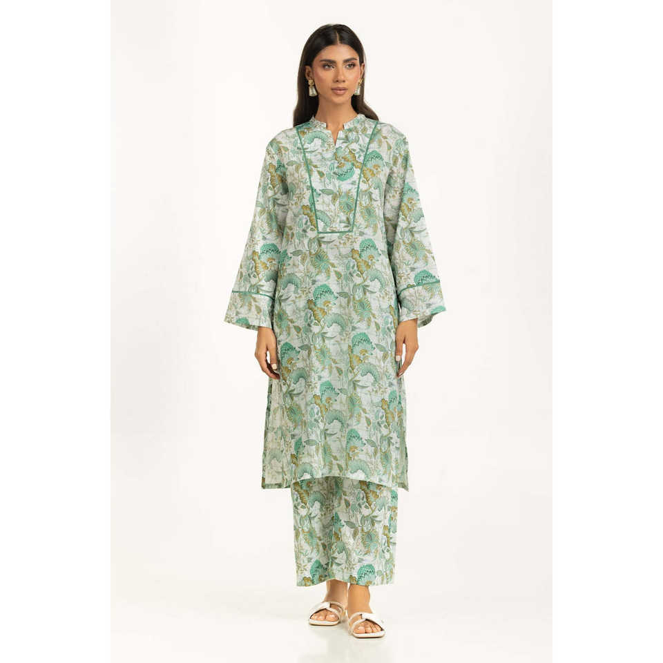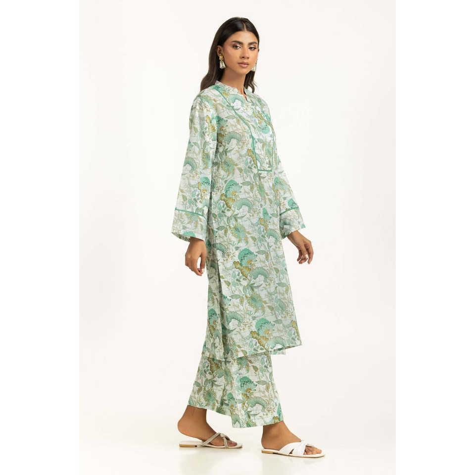 ชุดลำลองสำหรับผู้หญิง IUSTTS-1100 รุ่นสปริง/ซัมเมอร์ ชุดเซ็ต 2 ชิ้น เสื้อและกางเกงขาสั้นผ้าเครปและชีฟอง พิมพ์ลายผ้าลอน