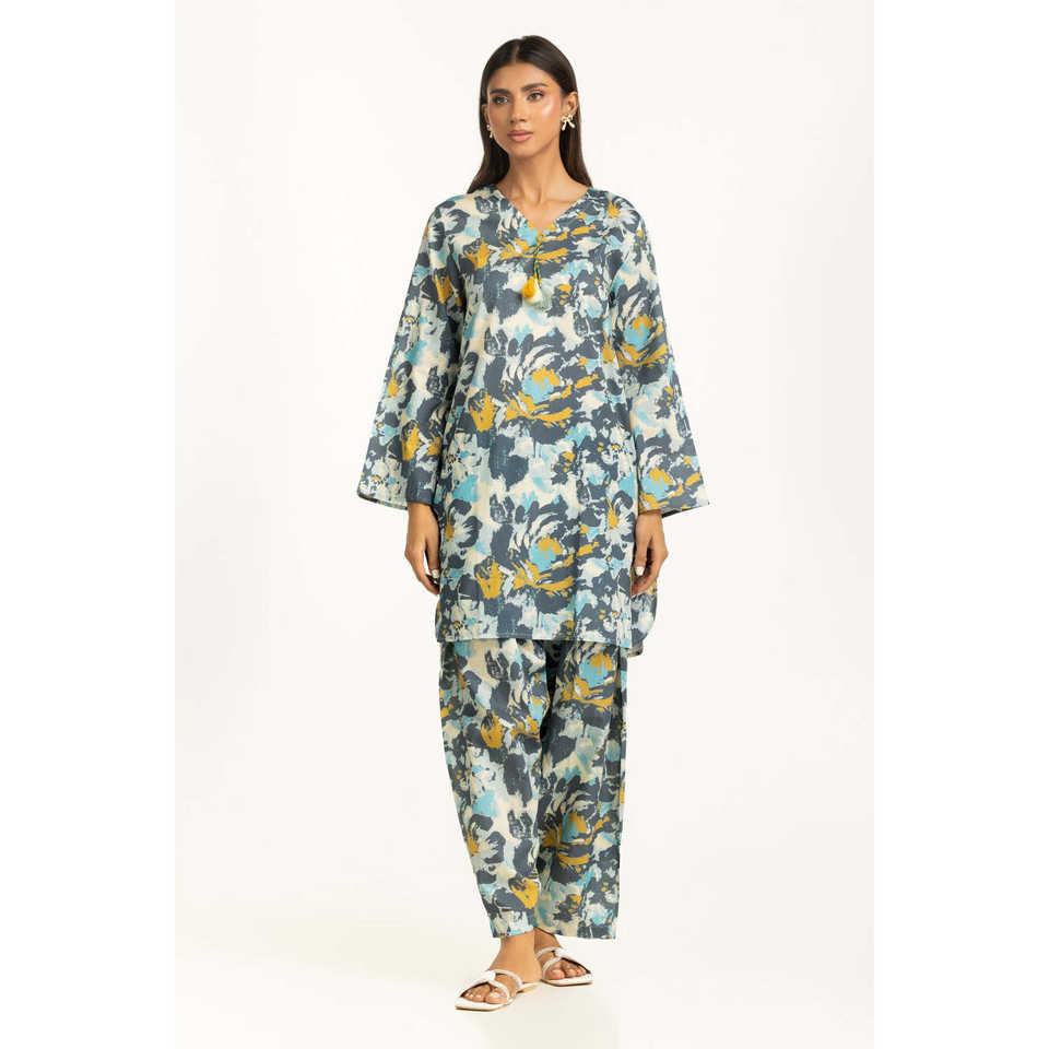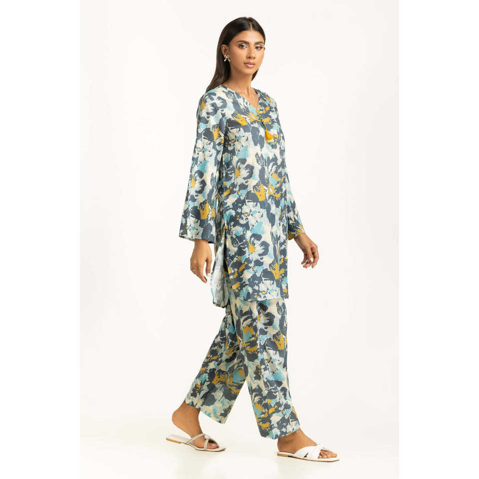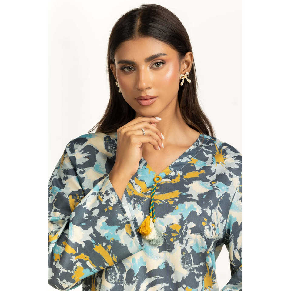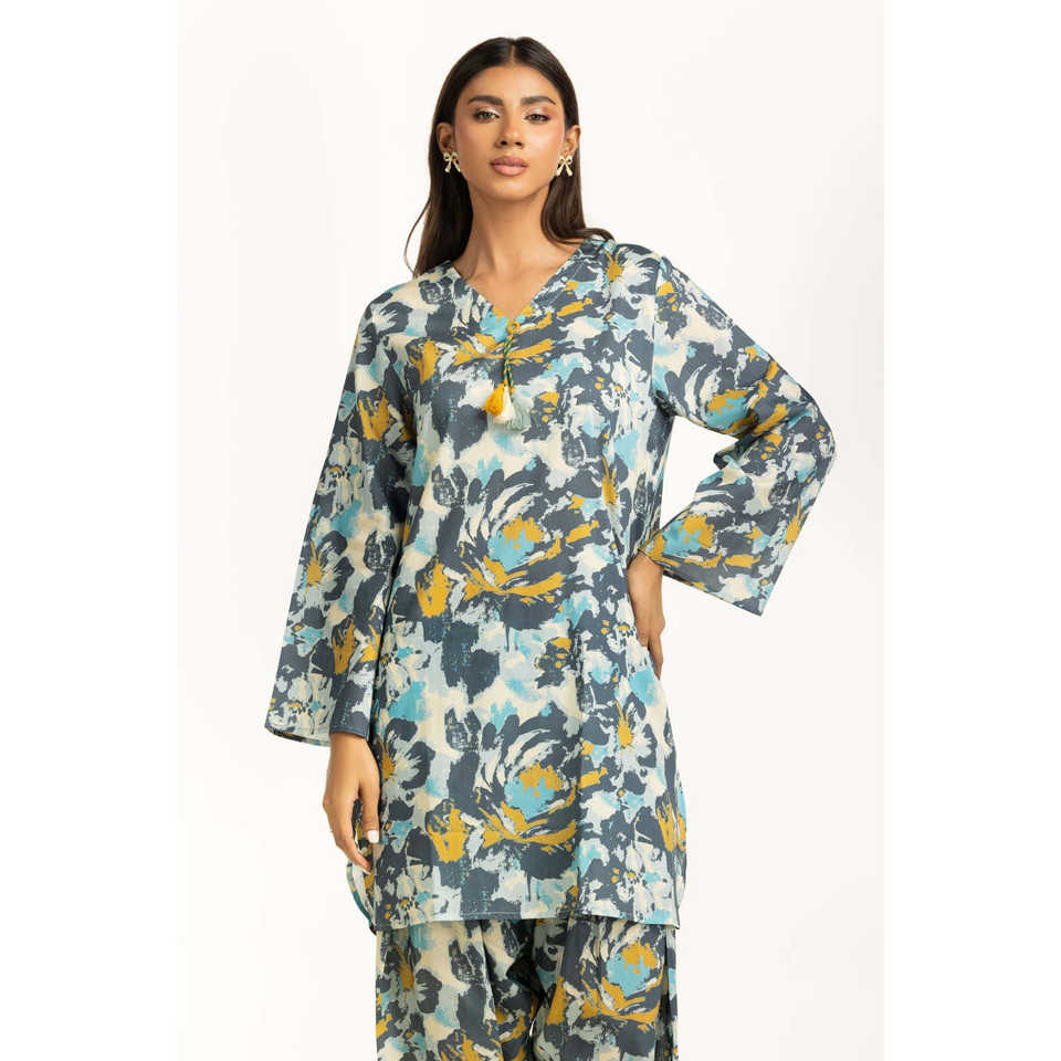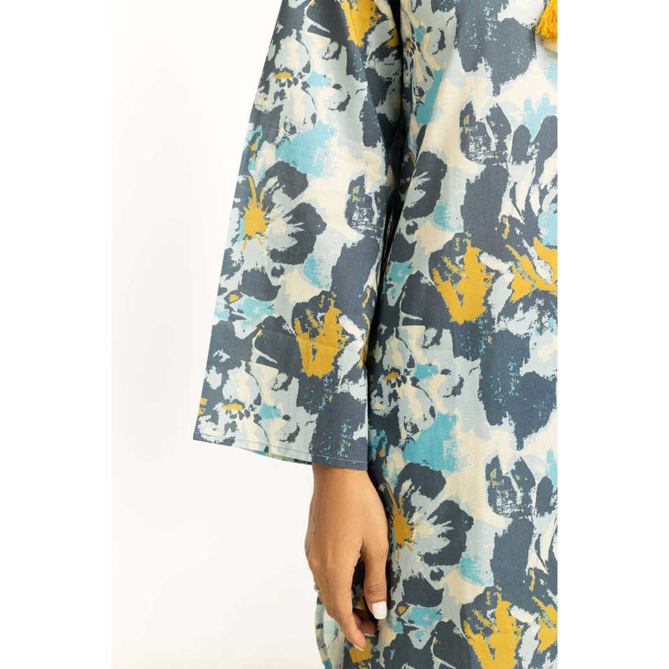 ชุดลำลอง IUSTTS-1155 สำหรับฤดูใบไม้ผลิ/ฤดูร้อน แขนสามส่วน พิมพ์ลายบนผ้าเครป เหมาะสำหรับใส่ไปเที่ยวสวน