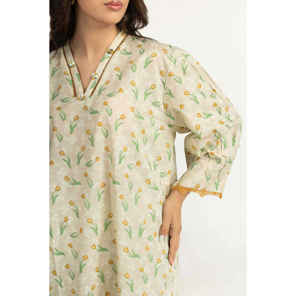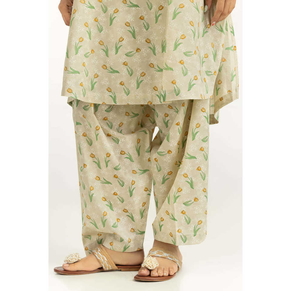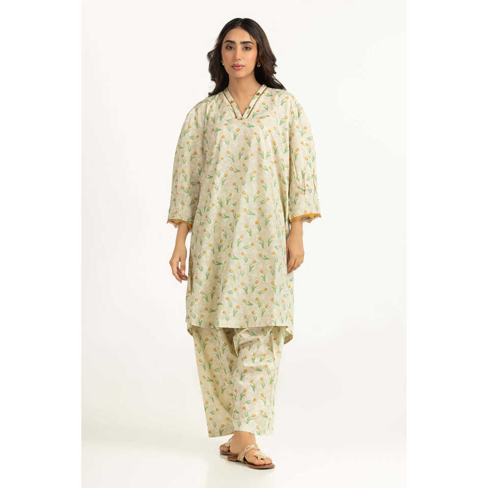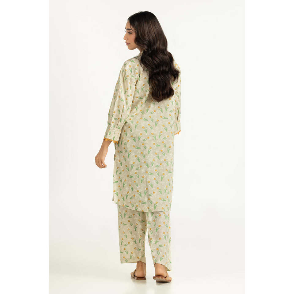 ชุดเซ็ต IUSTTS-2111 ลำลองสำหรับฤดูใบไม้ผลิ/ฤดูร้อน ชุดสองชิ้นผ้าเครปพิมพ์ลาย ผ้าลอนเนอร์เคลือบเงา แขนสามส่วน ไซส์ XS