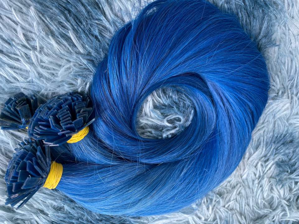 ผมต่อปลายแบนสีฟ้าน้ำแข็งเงางามปลายแบนสดใสสำหรับต่อผมที่ดูสร้างสรรค์และการติดตั้งที่มีคุณภาพสูงในร้านเสริมสวย