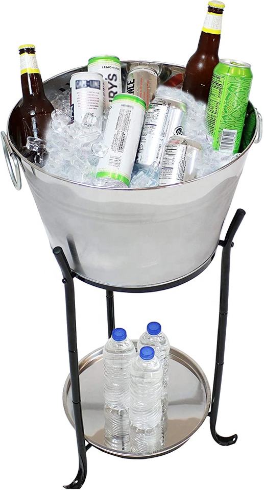 Ice Bucket Drink Cooler with Stand and Tray for Parties Stainless Steel Holds Beer Wine Champagne and More