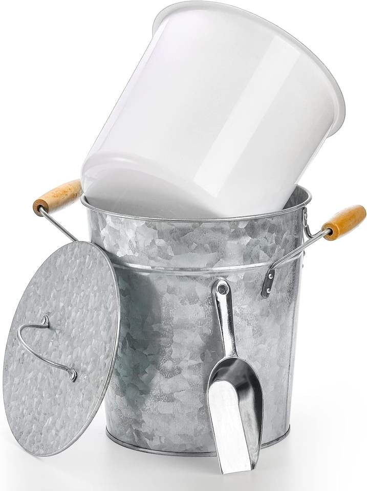 ถังน้ำแข็งพร้อมฝาปิดอ่างเครื่องดื่มโลหะชุบสังกะสีพร้อมตักมือจับตู้แช่เครื่องดื่มและไวน์สำหรับบาร์ปาร์ตี้