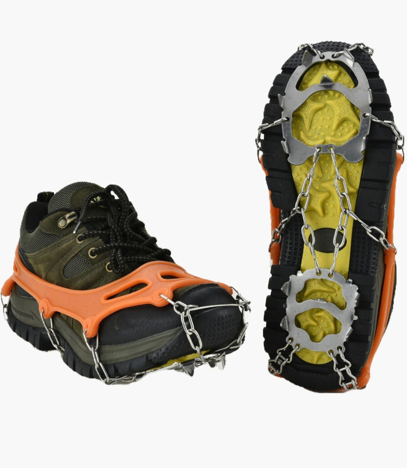 อุปกรณ์กันลื่นสำหรับเดินป่าในฤดูหนาว 19 หนามแหลมสแตนเลส ป้องกันการลื่นบนหิมะ สำหรับตั้งแคมป์ เดินป่า ตกปลา ล่องแก่ง