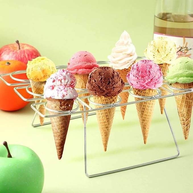 ที่วางโคนไอศกรีมแบบมีช่องหลายช่อง ชั้นวางโชว์ขนมหวานแบบใช้ซ้ำได้สำหรับงานปาร์ตี้ งานวันเกิด ไอศกรีมบาร์