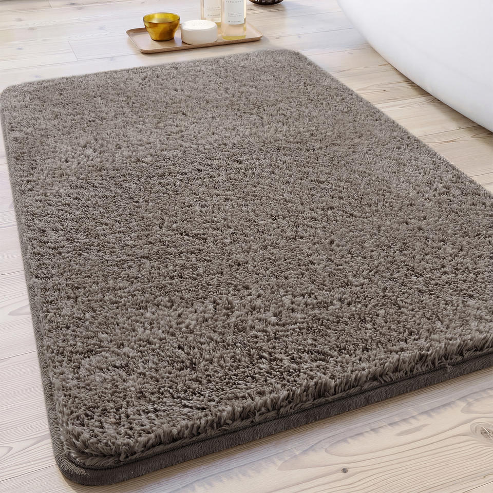 พรมเช็ดเท้ารูปสี่เหลี่ยมผืนผ้าสีน้ำตาลไอศกรีม ผลิตจากไมโครไฟเบอร์ ซึมซับน้ำได้ดี กันลื่น เหมาะสำหรับห้องน้ำ สไตล์มินิมอล