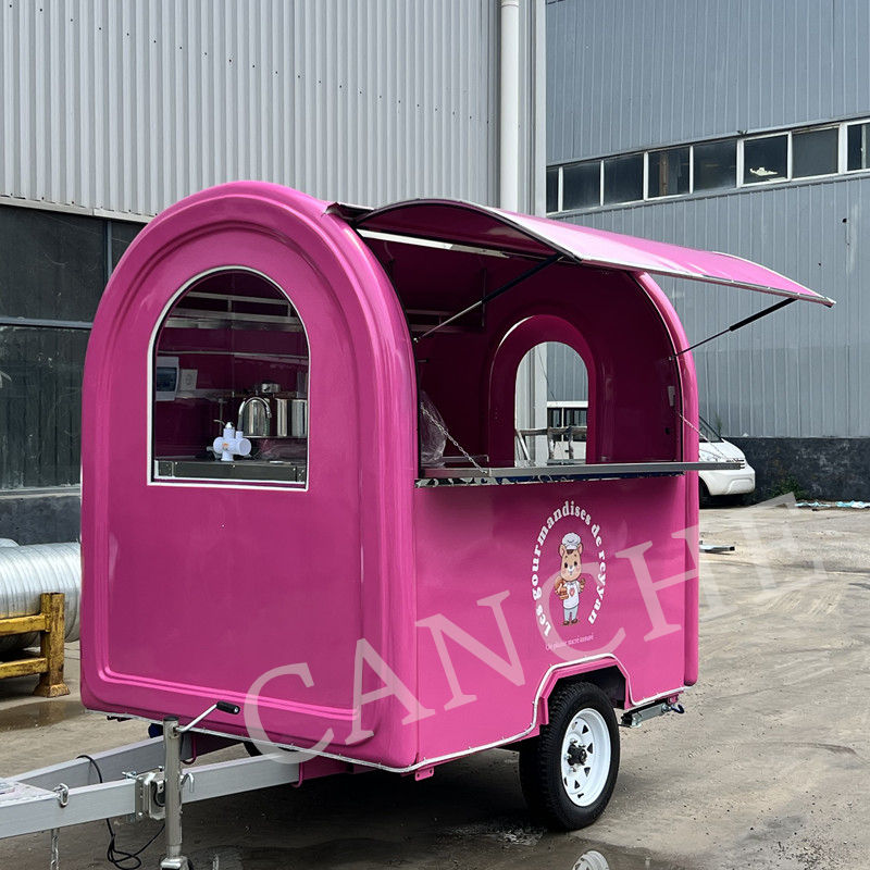 สภาพ:รถพ่วงขายอาหารสำหรับทำไอศกรีมรถเทรลเลอร์สีชมพูเคลื่อนที่ได้สำหรับบาร์บีคิว