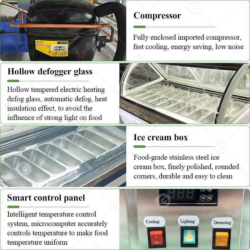 ตู้แช่ไอศกรีม 6 16 18 20 24 ช่อง ตู้โชว์ไอศกรีมเจลาโต้แบบอิตาเลียน ตู้แช่แข็งแบบเคาน์เตอร์ ราคา