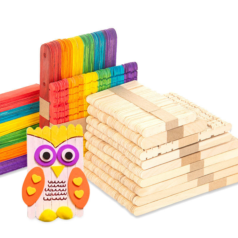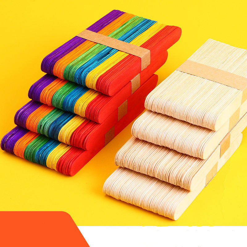 แท่งไอศกรีมแท่งทำมือแบบ DIY วัสดุทำกระท่อมแท่งไอติมแท่งปริศนาสำหรับเด็กประกอบโมเดลแท่งไม้