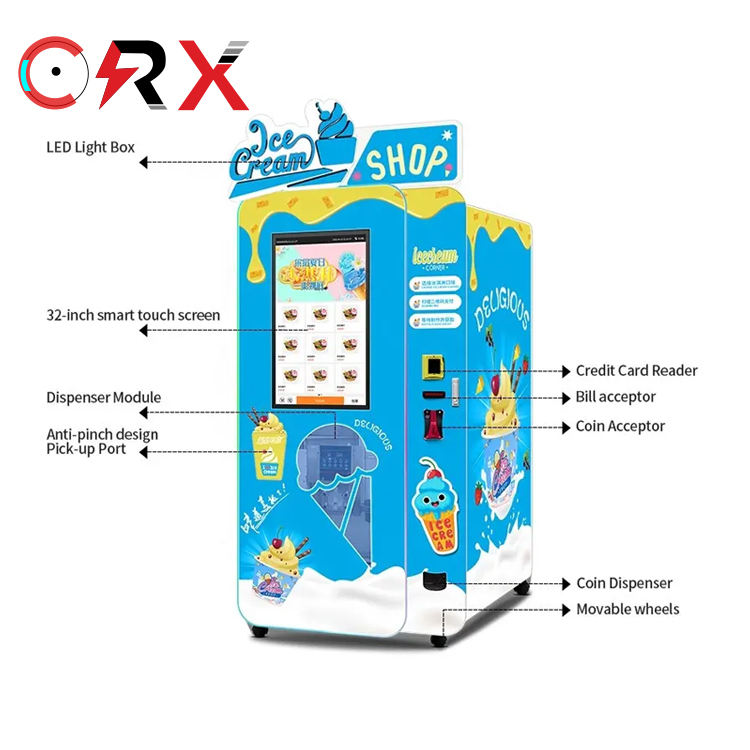 ตู้ขายไอศกรีมอัตโนมัติอัจฉริยะกลางแจ้งตู้จำหน่ายไอศกรีมนุ่มอัตโนมัติเต็มรูปแบบ