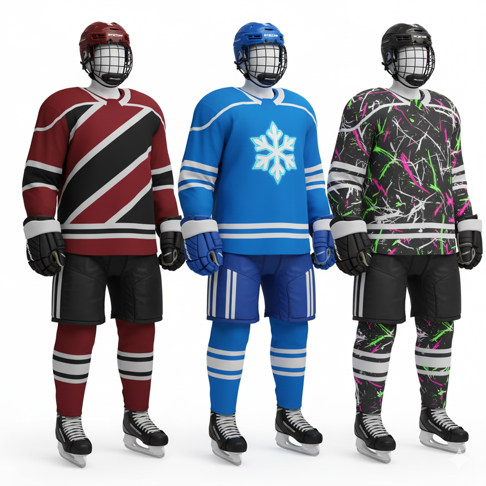 ชุดเครื่องแบบฮ็อกกี้น้ำแข็งสำหรับผู้ชายและผู้ใหญ่วัสดุแห้งเร็วทำจากโพลีเอสเตอร์100% สามารถปรับแต่งสีและโลโก้ได้