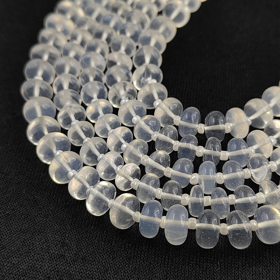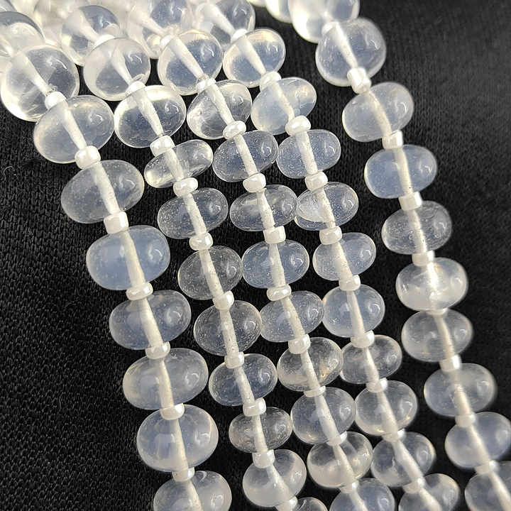 ลูกปัดควอตซ์น้ำแข็งทรงรอนเดลล์ขนาด 6-7 มม. ผิวเรียบ สำหรับทำเครื่องประดับ ลูกปัดควอตซ์น้ำแข็งทรงรอนเดลล์ 20-22 เม็ดต่อเส้นยาว 8 นิ้ว