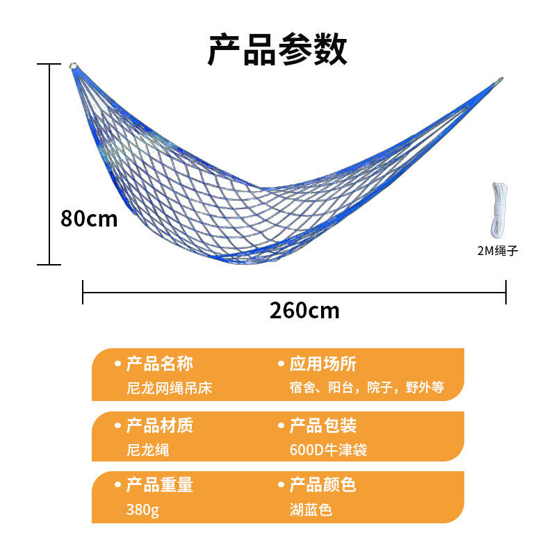 เปลญวนกลางแจ้งผ้าไหมน้ำแข็ง ตาข่ายไนลอน ทนทาน รับน้ำหนักได้ 200 จิน ดีไซน์มินิมอลหลากสี พร้อมเชือกแขวนสำหรับตั้งแคมป์
