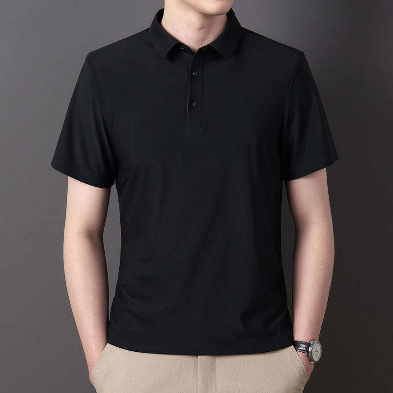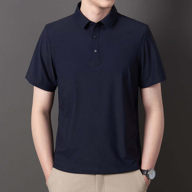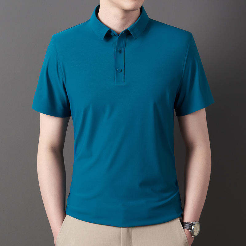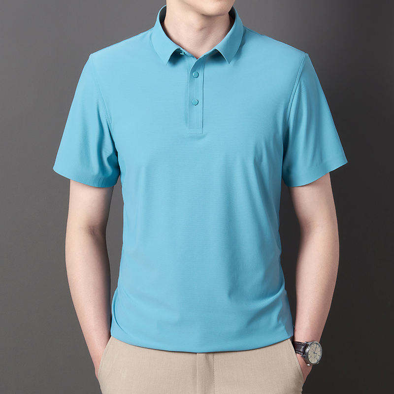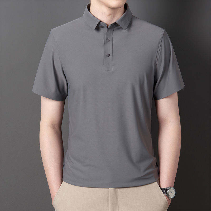เสื้อโปโลแขนสั้นผ้าไอซ์ซิลค์ แห้งเร็ว ระบายอากาศดี เสื้อยืดผู้ชาย สไตล์ใหม่ ปกพับ สีพื้น ผ้าฝ้าย 100%