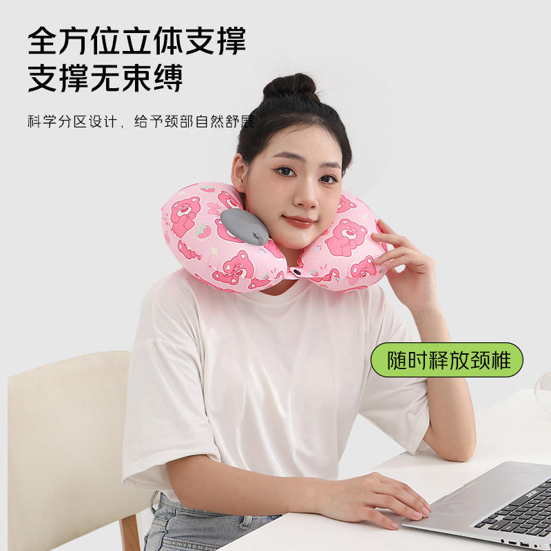 หมอนเป่าลมรูปตัวยู ไอซ์ซิลค์ พกพาสะดวก รองรับต้นคอสำหรับการเดินทาง ลายสัตว์ สำหรับใช้งานทั่วไป