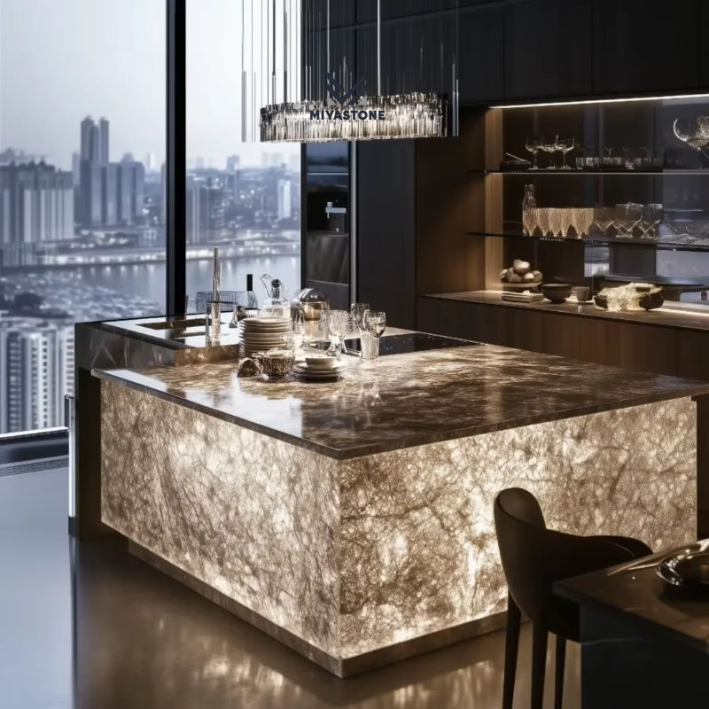 เคาน์เตอร์ครัวและห้องน้ำหินอ่อนสีขาวน้ำแข็งสไตล์โมเดิร์นสำหรับใช้ในโรงแรม ความหนา 12 มม.-30 มม. ผิวขัดเงา