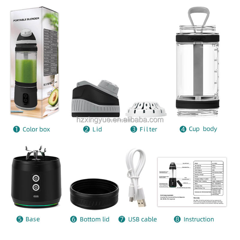 ถ้วยปั่นน้ำผลไม้จิ๋วขนาด700มล. ถ้วยปั่นน้ำผลไม้ขนาดเล็กแบบพกพาความเร็ว USB