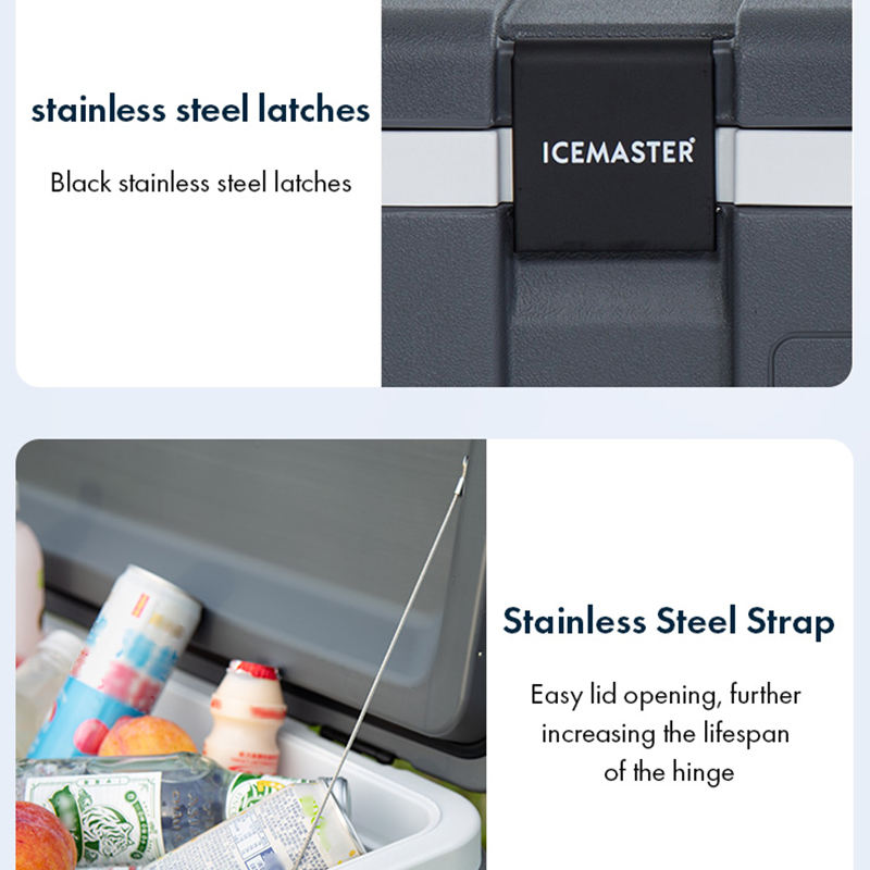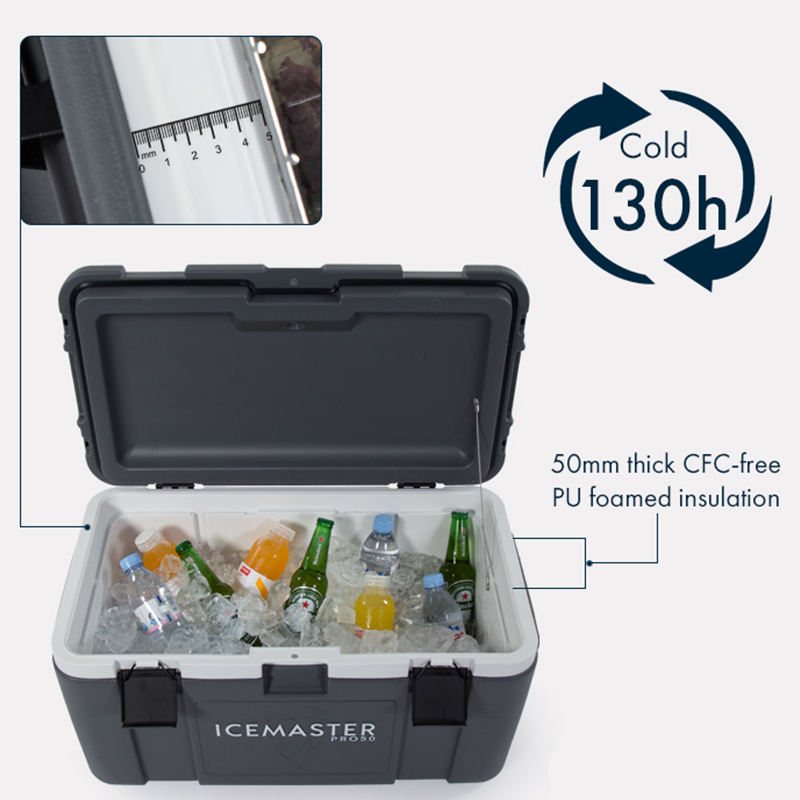 ฉนวนกันความร้อน IceMaster ติดงานหนักได้ดีไซน์วางซ้อนกันได้ กล่องแคมป์ปิ้งขนาด 50 ลิตรน้ําแข็งเย็น