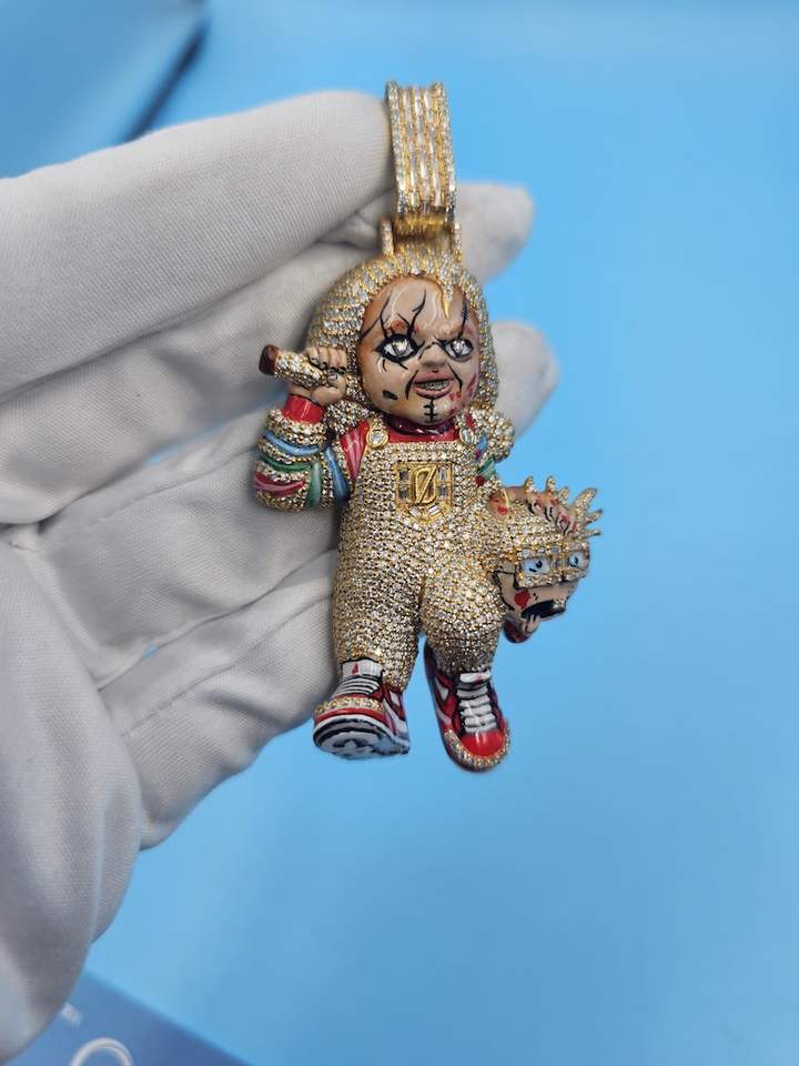 จี้เพชรโมอิสซาไนต์ทรงกลมหลากสีแบบ 3 มิติ สไตล์การ์ตูนสยองขวัญฮิปฮอป พร้อมจี้เงินแท้ 925