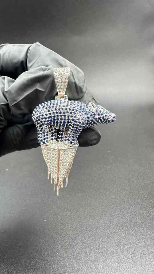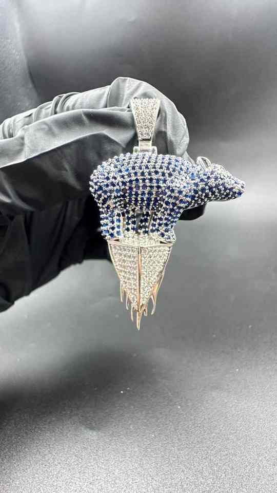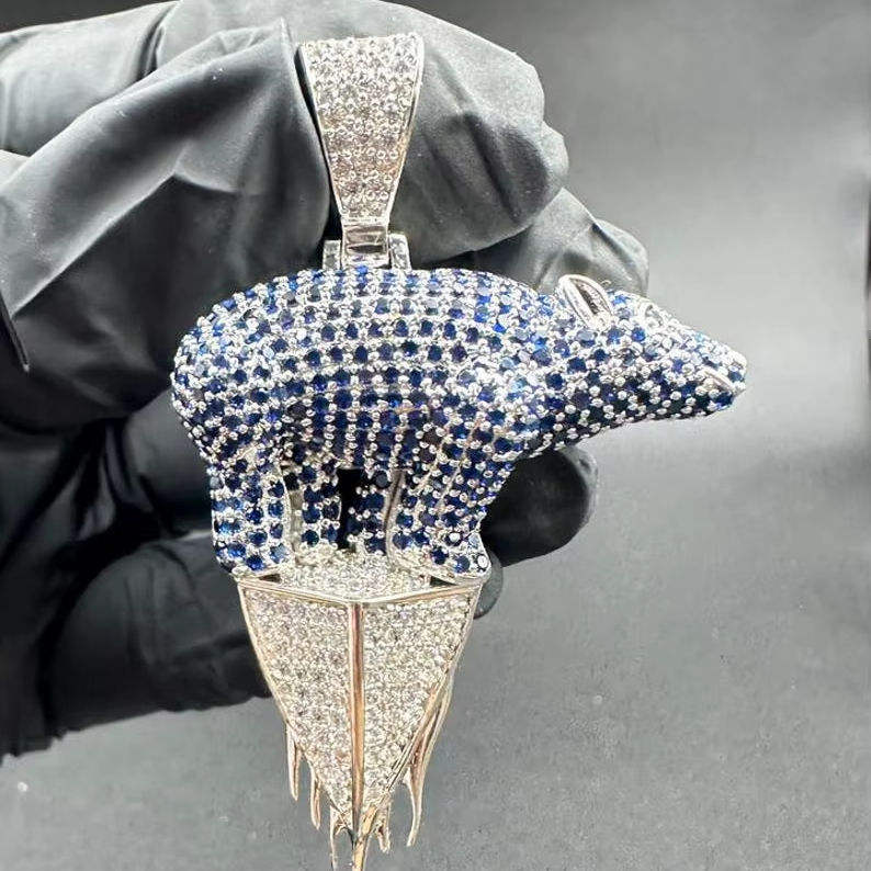 จี้เงินแท้ 925 ดีไซน์หมีน้ำแข็ง ประดับเพชรโมอิสซาไนต์สีน้ำเงินขาว สไตล์ฮิปฮอป แฟชั่นทันสมัย