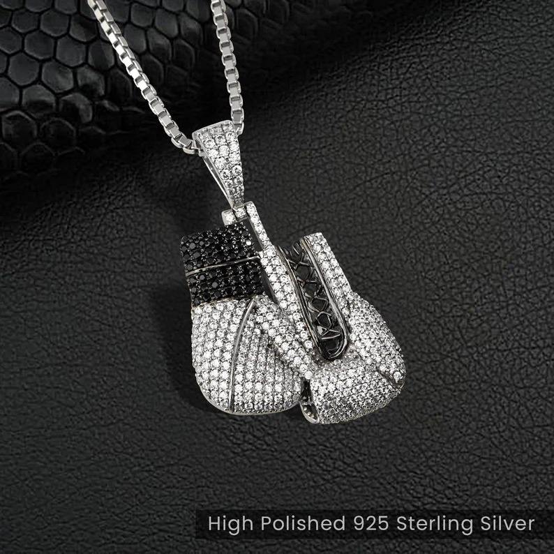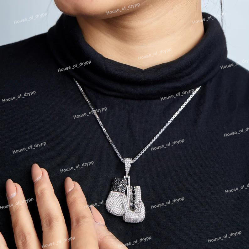 จี้รูปถุงมือต่อยมวยพร้อมโมอิสซาไนต์สเตอร์ลิงหรูหราสร้อยคอฮิปฮอปของขวัญสำหรับคนรักมวยไฟท์เตอร์