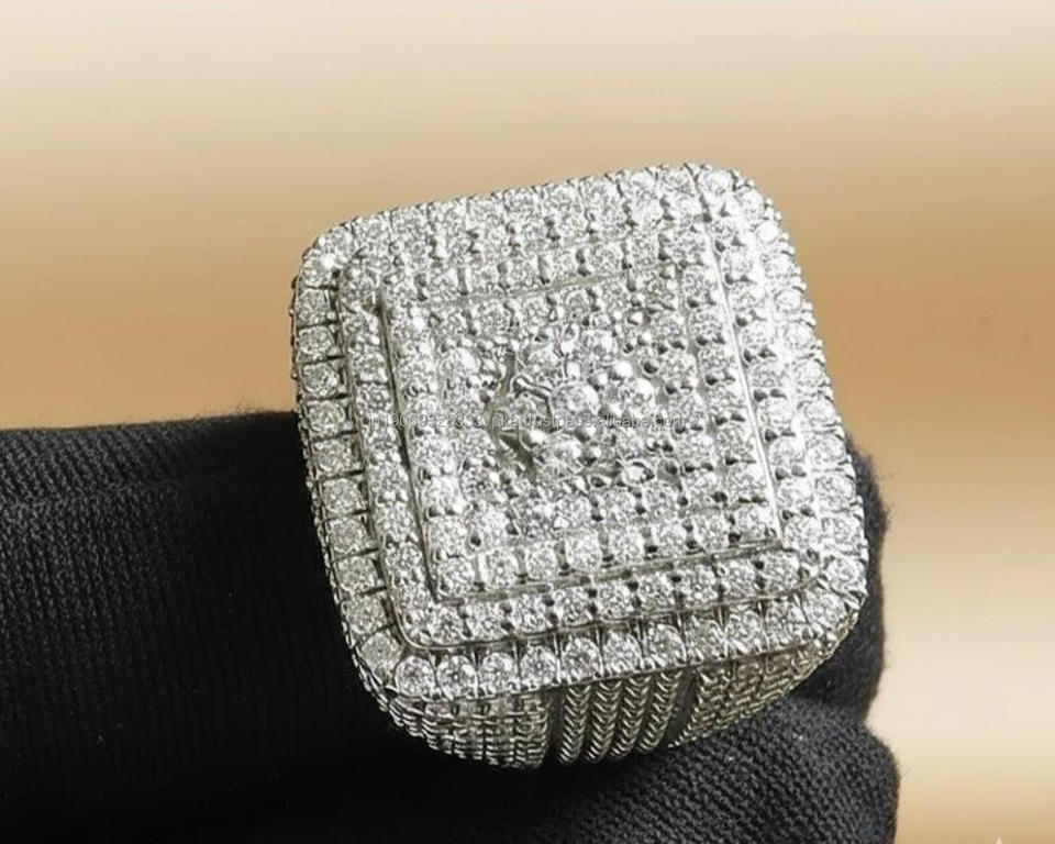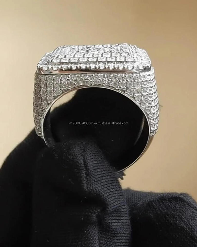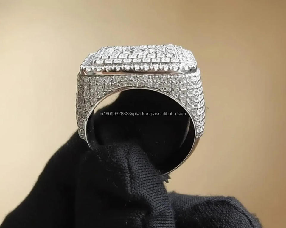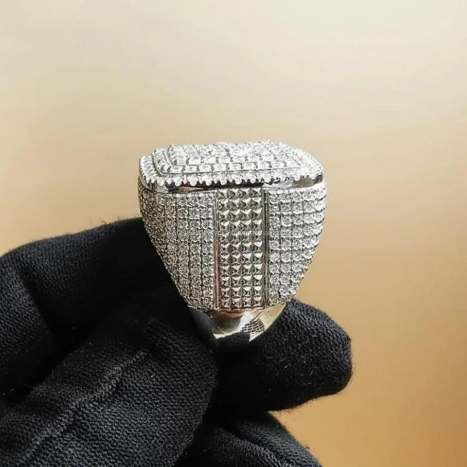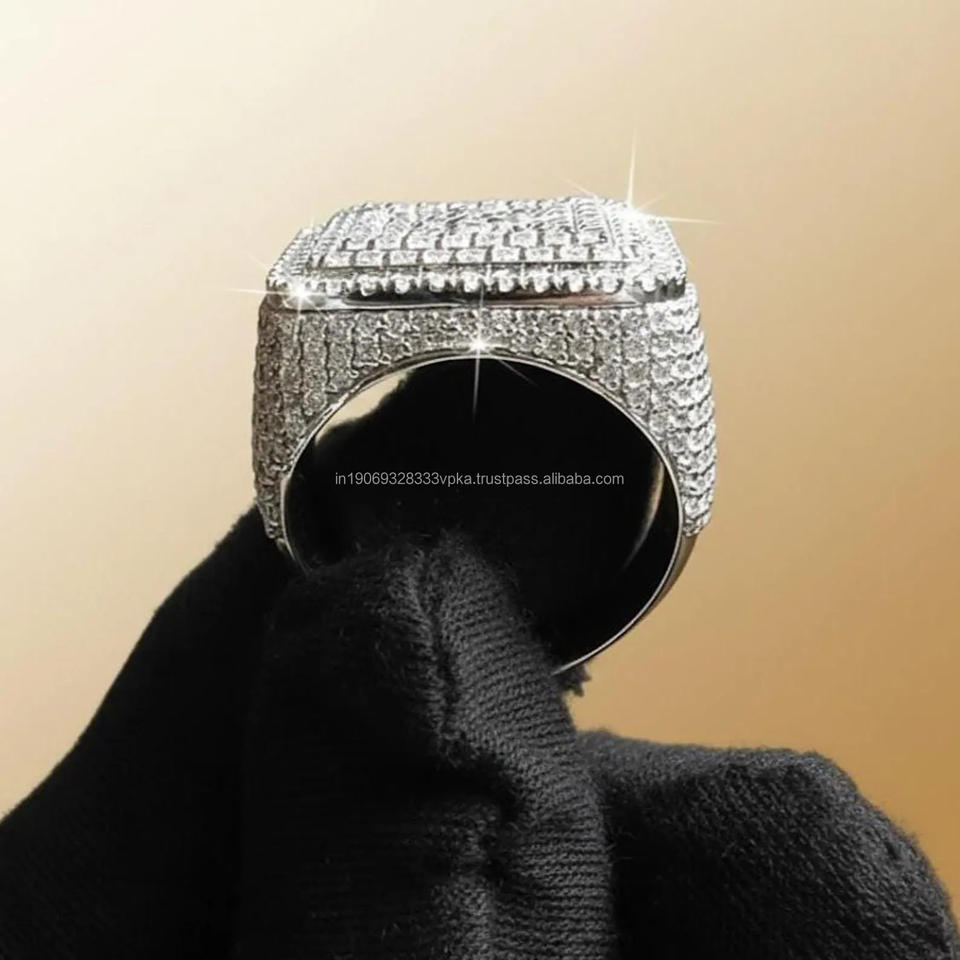 แหวนเงินแท้ทรงครอสประดับเพชรโมอิสซาไนต์ชุบโรเดียมสไตล์ฮิปฮอป เหมาะเป็นของขวัญวาเลนไทน์สำหรับเธอ/เขา
