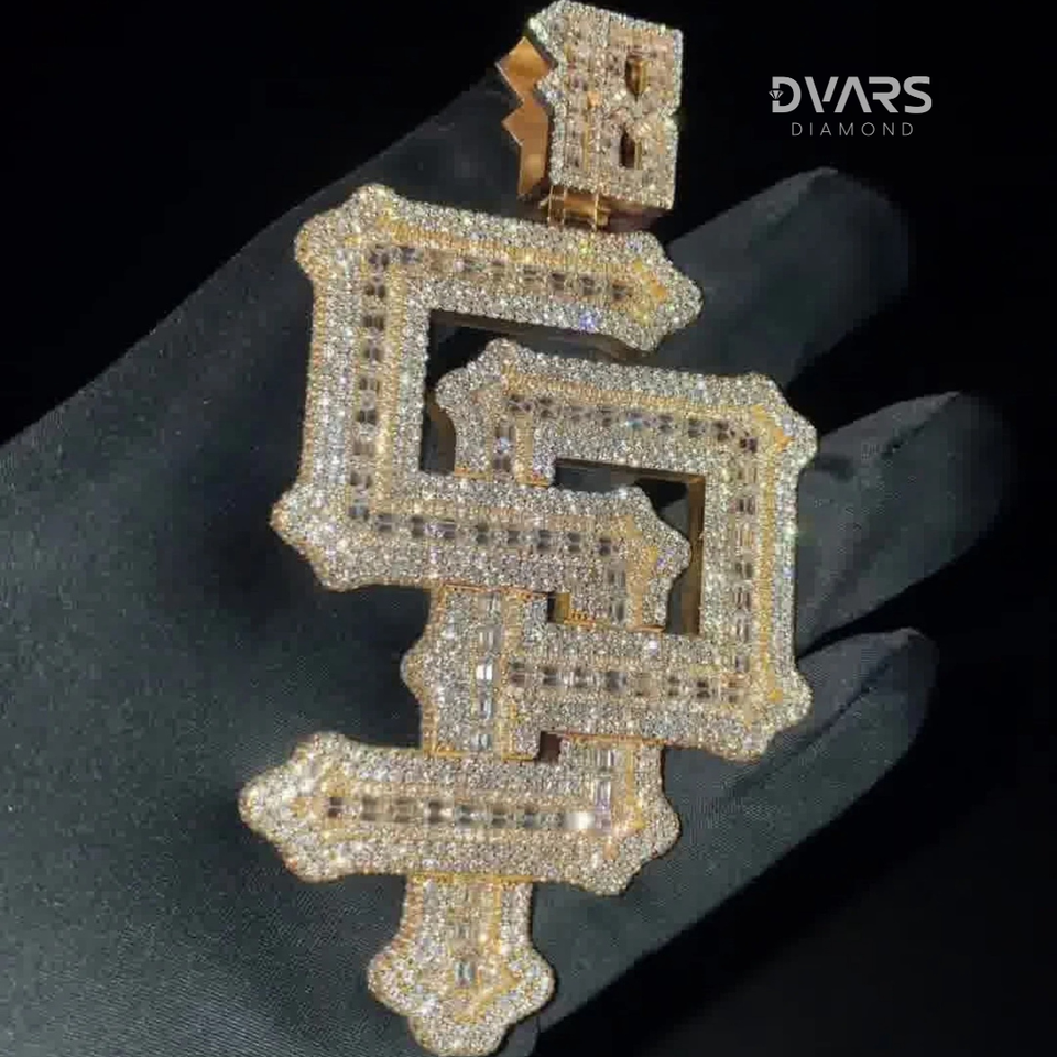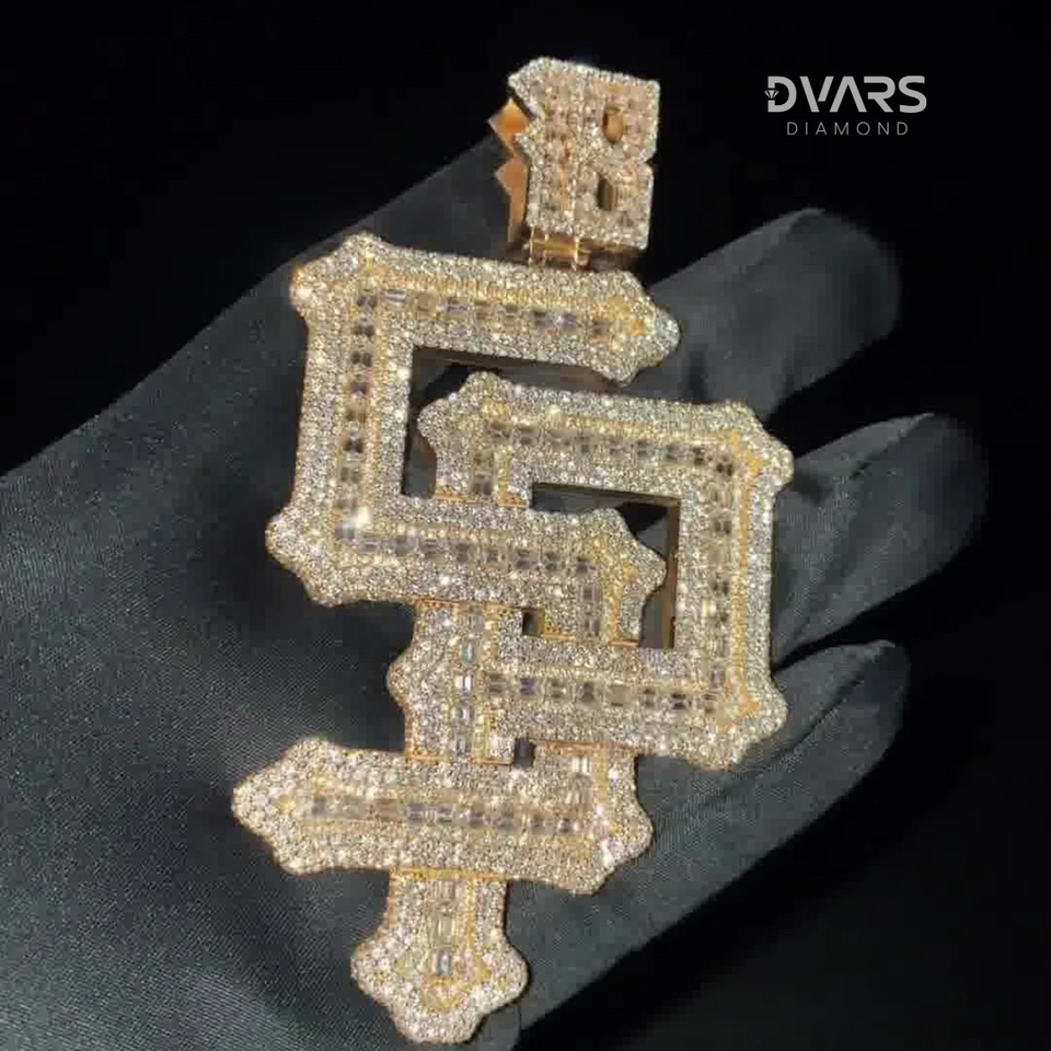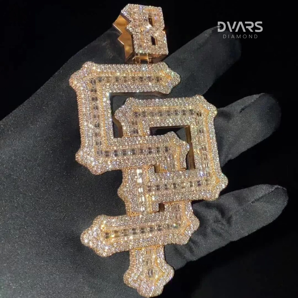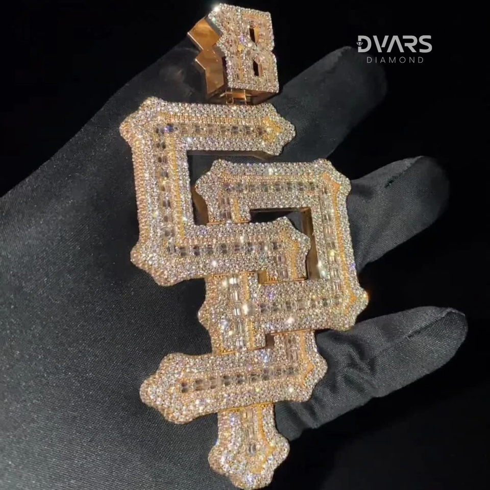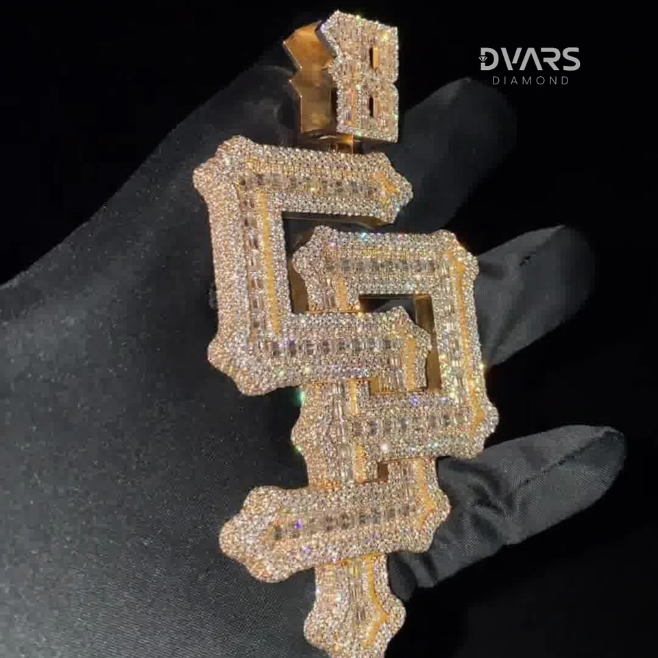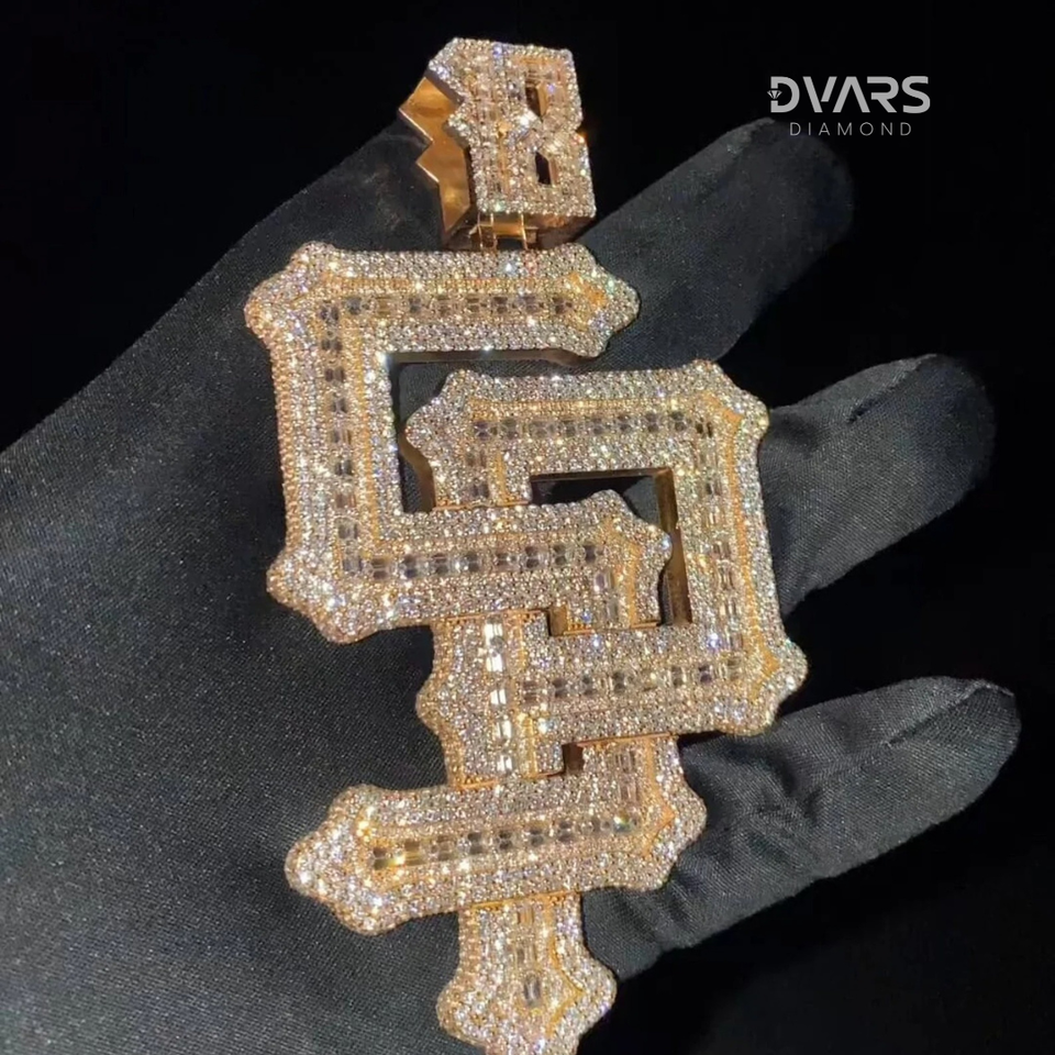 จี้เพชรแบบกำหนดเองทรงตัวอักษรสำหรับผู้ชาย คุณภาพ VVS ทรงเหลี่ยมบริลเลียนท์ สไตล์ฮิปฮอป ผ่านการทดสอบเพชร ชุบทองคำแท้ เงินสเตอร์ลิง