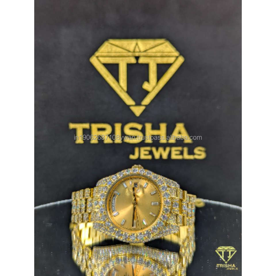 นาฬิกาข้อมือผู้ชายชุบทองคำขาว ประดับเพชร VVS ที่ได้รับการเพาะเลี้ยงในห้องปฏิบัติการ พร้อมหน้าปัดขัดเงา ดีไซน์หรูหราพรีเมียม