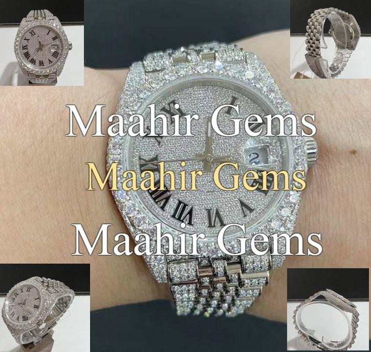 นาฬิกาข้อมือฮิปฮอปหรูหราอัตโนมัติประดับเพชรโมอิสซาไนต์ สายสแตนเลสสตีล กระจกกันน้ำ 10 บาร์ พร้อมตัวล็อคแบบสายรัดข้อมือ