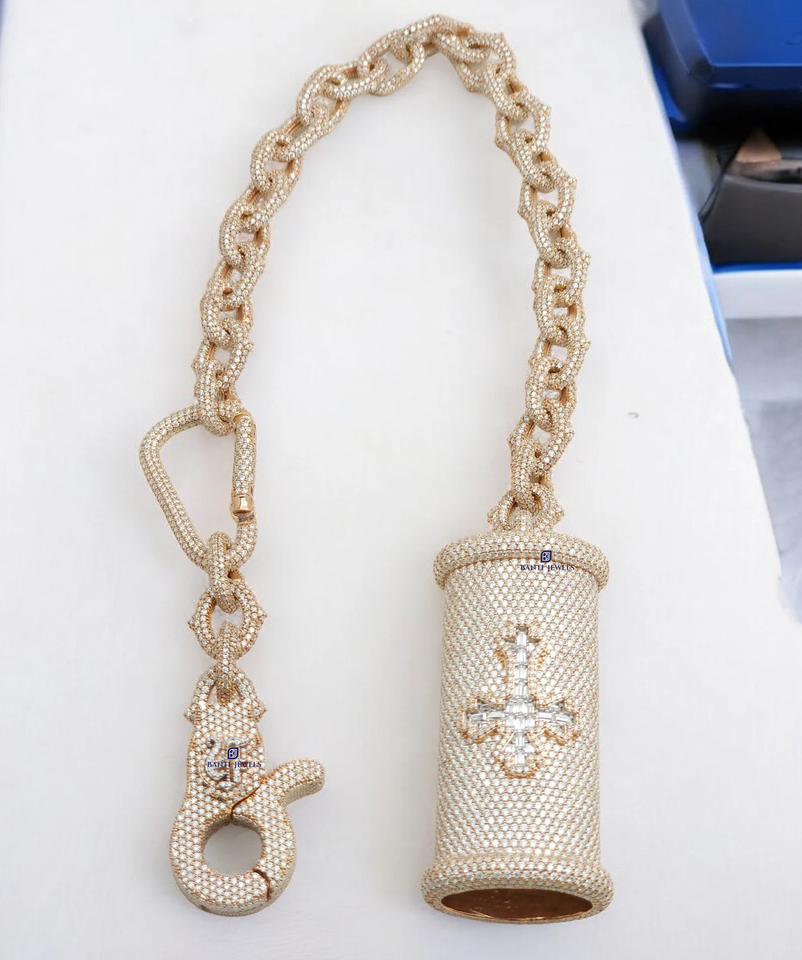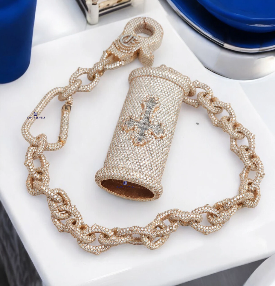 จี้รูปทรงกระบอกประดับมุกน้ำจืดและมอสซาไนต์แบบฝังละเอียดเคลือบทองคำขาวและโรสโกลด์ สไตล์หรูหราสำหรับงานปาร์ตี้ฮิปฮอป
