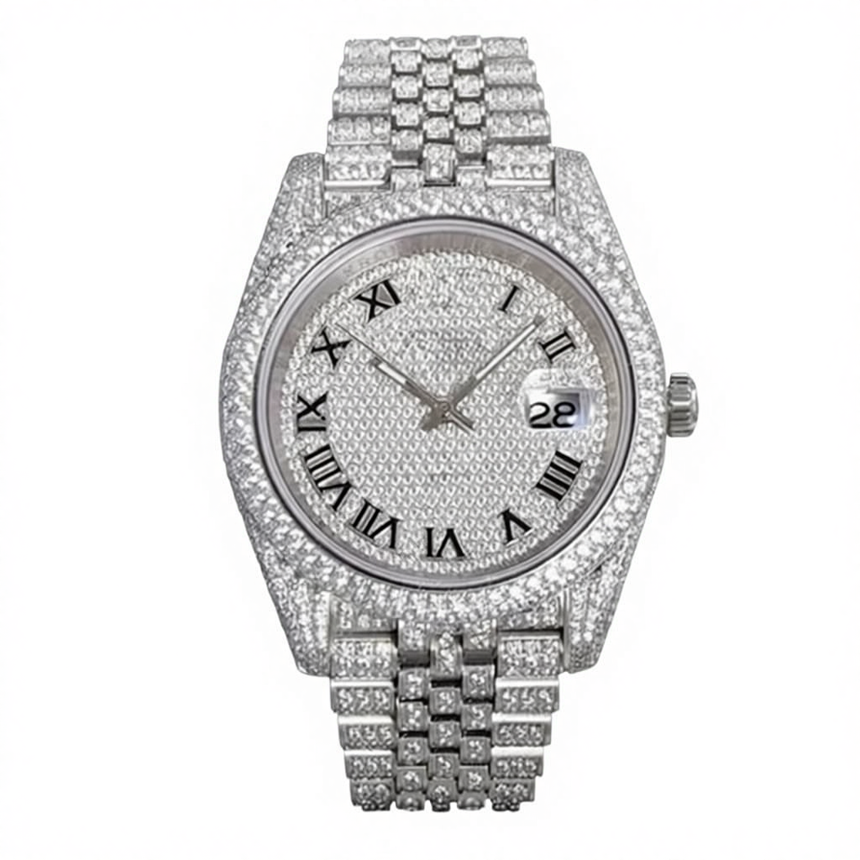 นาฬิกาข้อมือผู้ชายแบบอัตโนมัติ ดีไซน์หรูหรา สไตล์ฮิปฮอป ประดับเพชรโมอิสซาไนต์ ตัวเรือนสแตนเลส กันน้ำได้ 100 บาร์