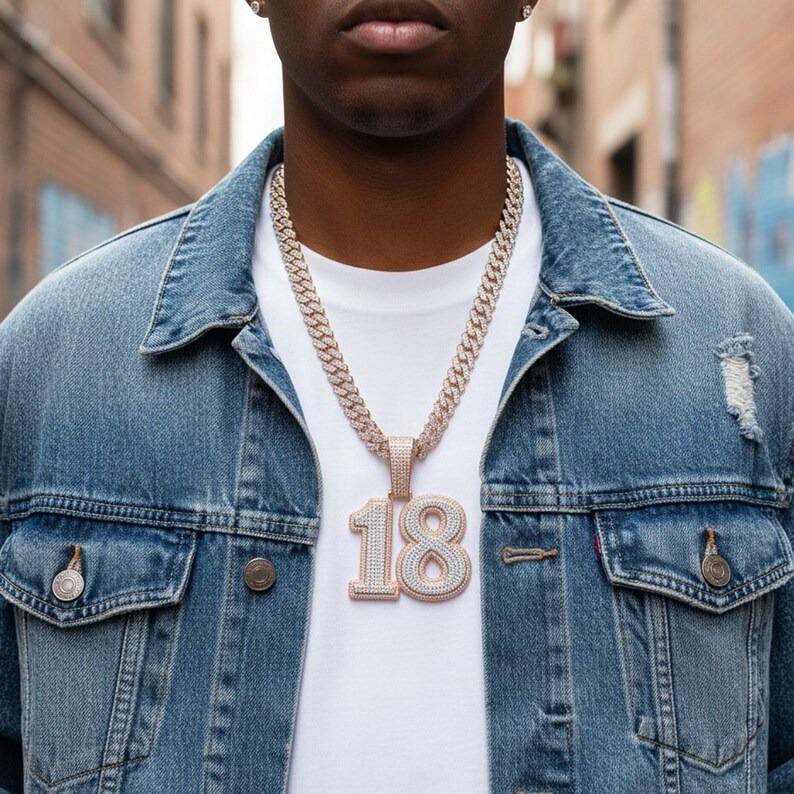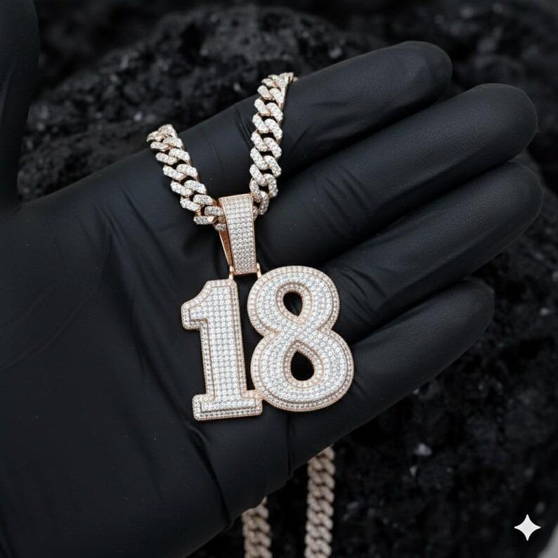 สร้อยคอจี้เงินแท้ 925 ชุบเงิน ประดับมุกน้ำจืดและมอยส์ซาไนต์ ทรงบริลเลียนต์คัท รุ่น Iced Number 18 สำหรับผู้ชาย สไตล์ฮิปฮอปสุดเทรนดี้ สามารถสั่งทำได้